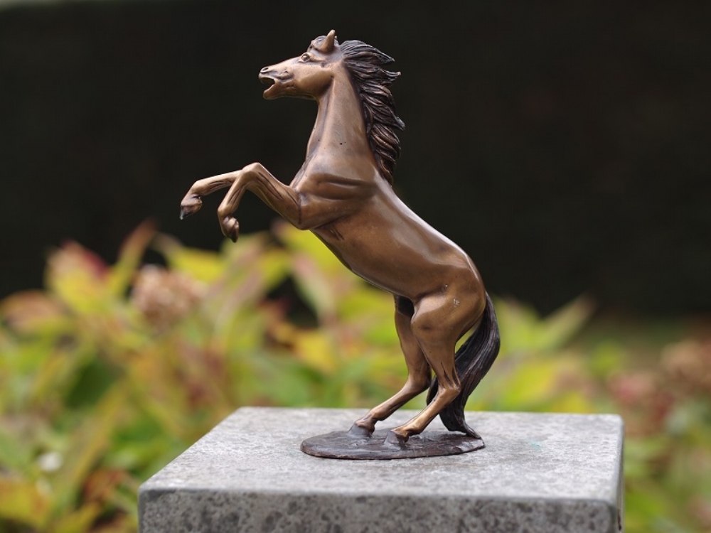 Lille stejlende hest i bronze