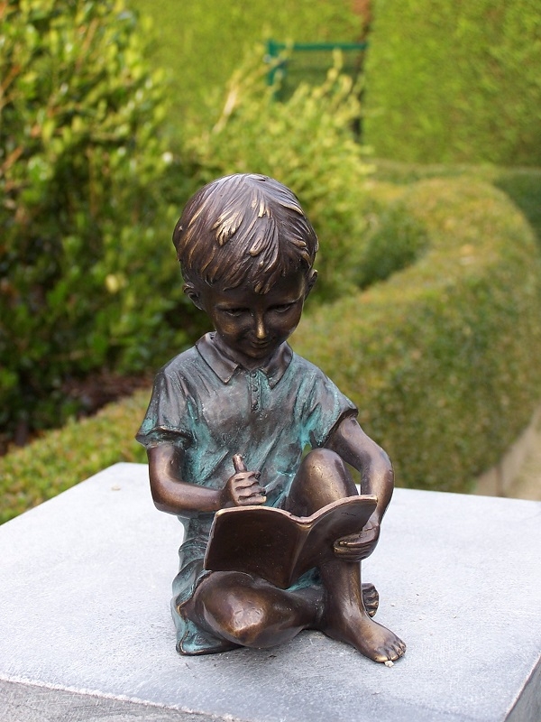 Dreng lavet i bronze som sidder og tegner.