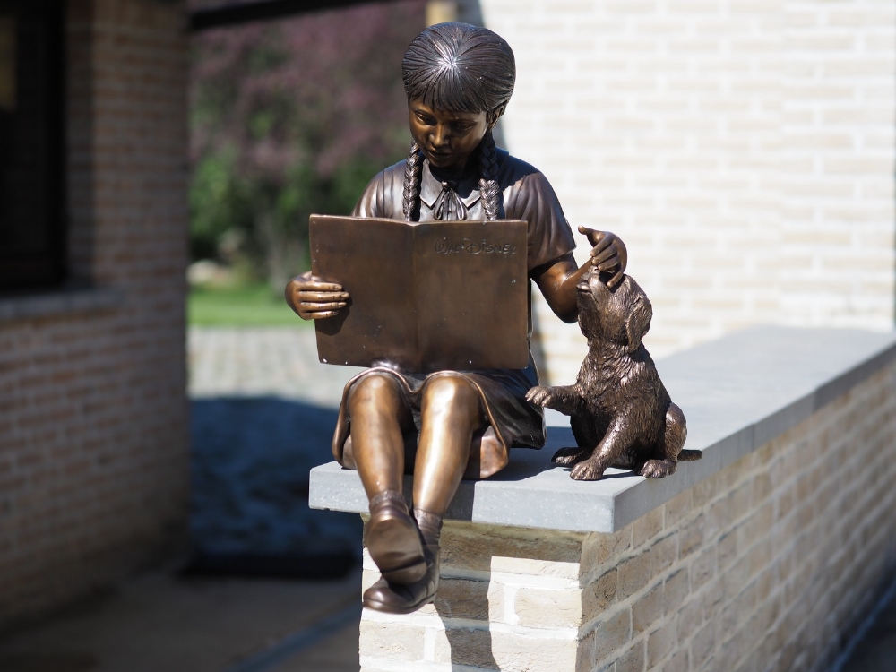Bronzefigur Pige med hund
