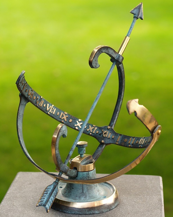 Solur i bronze med gennemgående pil og romertal