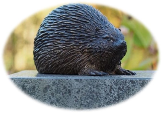Lille pindsvin i bronze, sidder og ser rigtig vigtig ud.