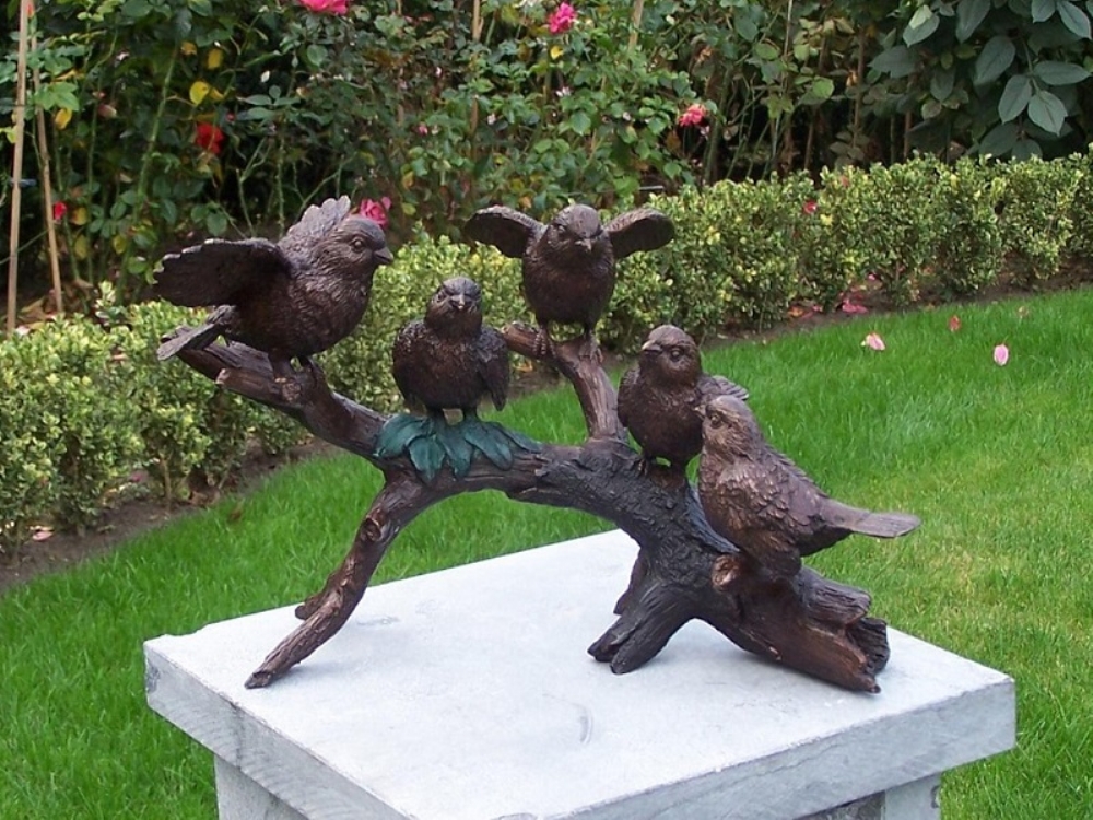 5 bronze fugle på gren.