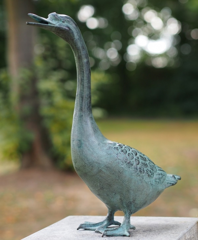 En 38 cm høj gås udformet i bronze.