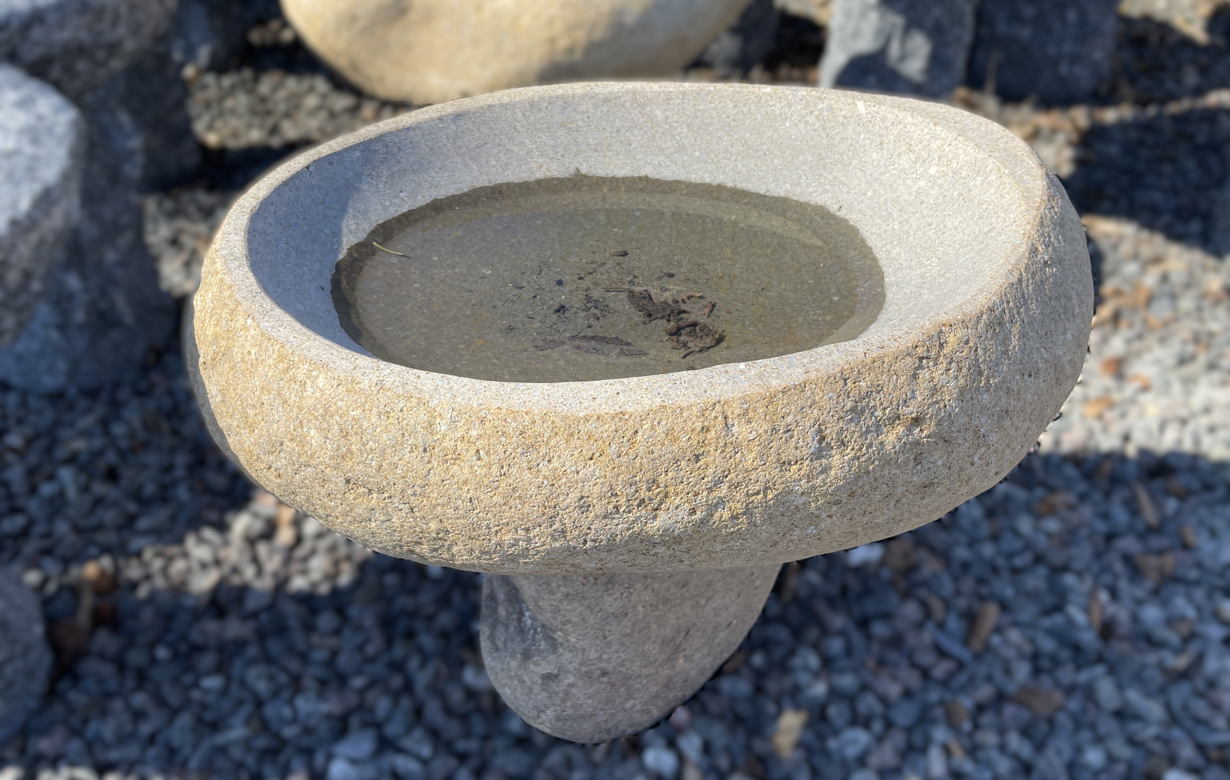 Fuglebad lavet i marksten.