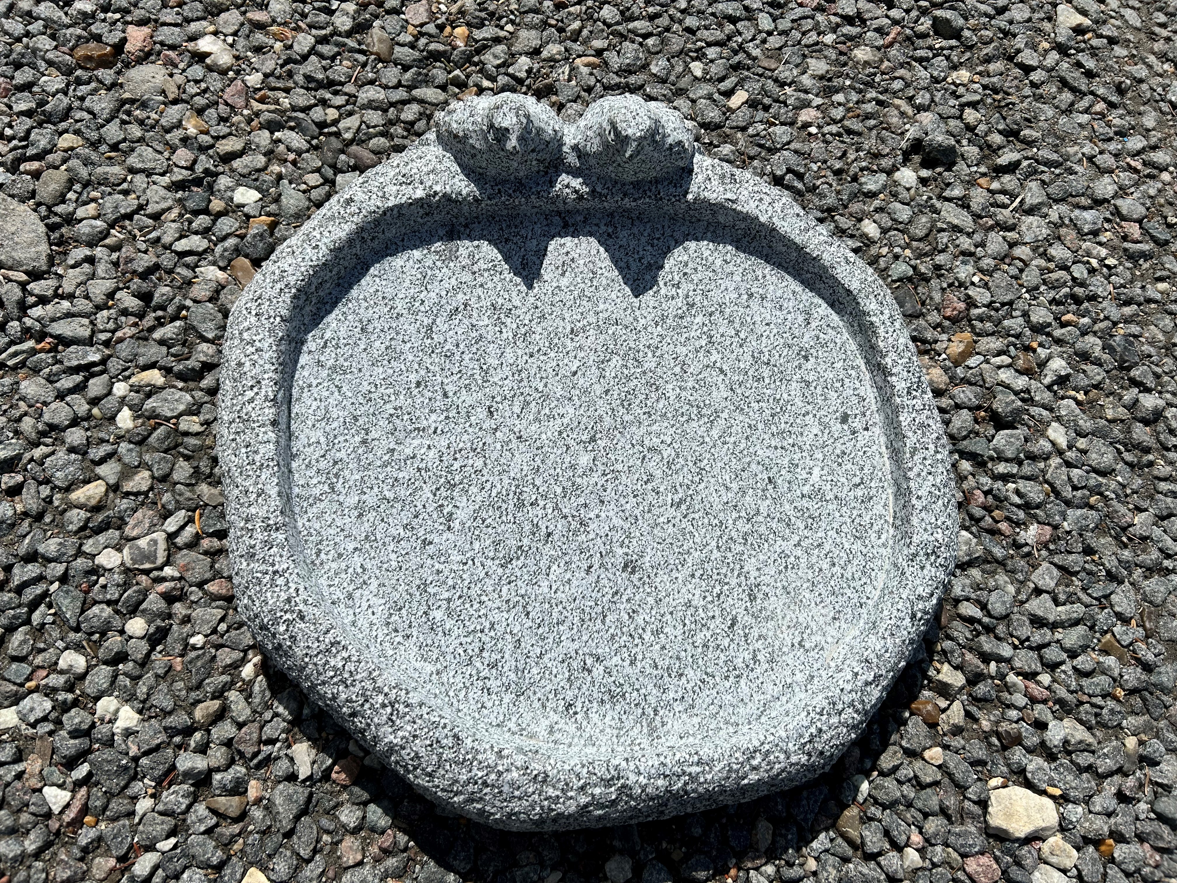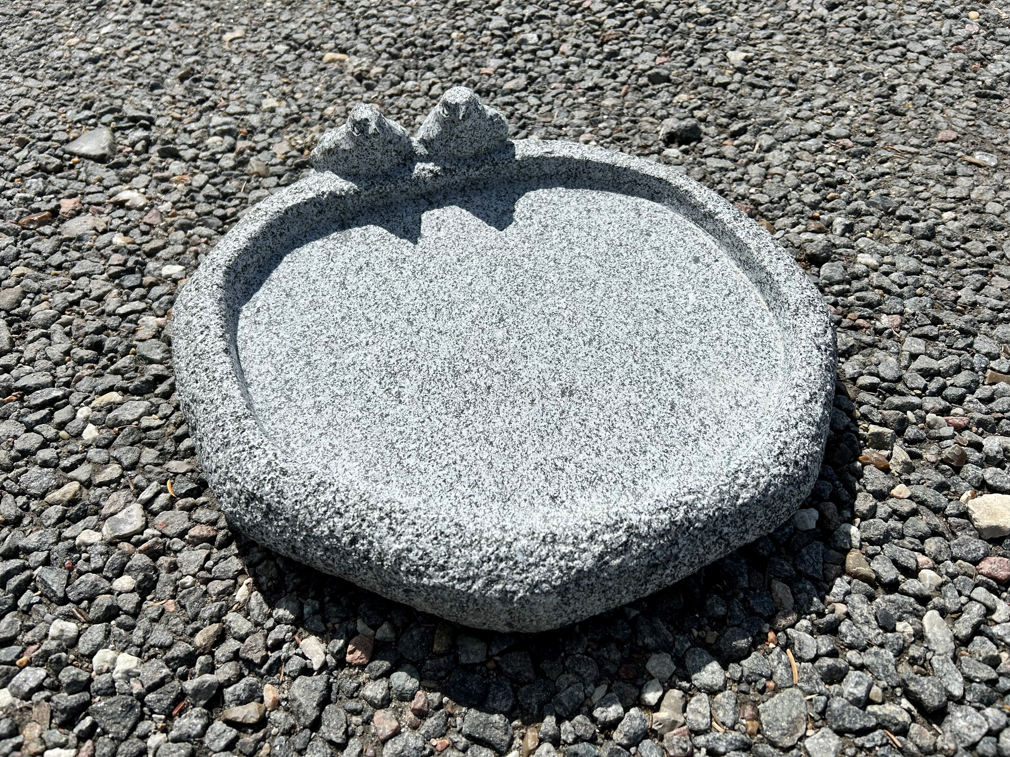 Granitfuglebad produceret i gråsort granit med en ru overflade.