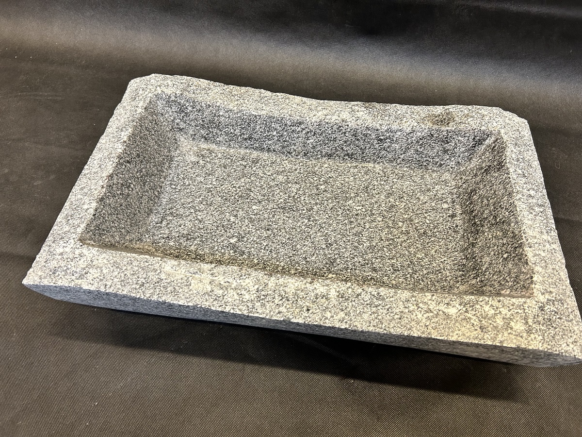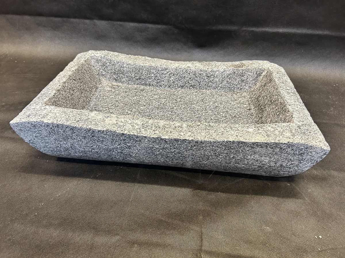 Fuglebad kaldt Lisa, håndhugget i gråsort granit.