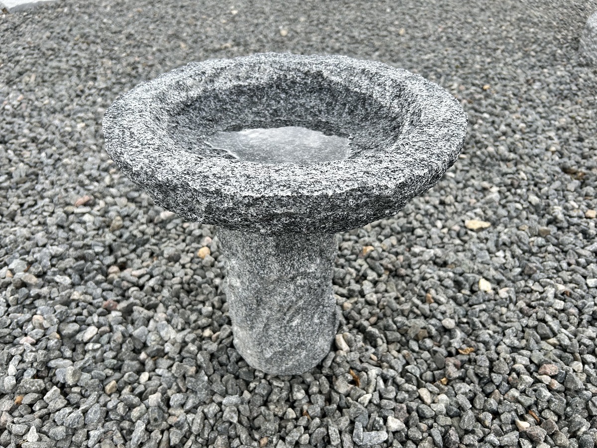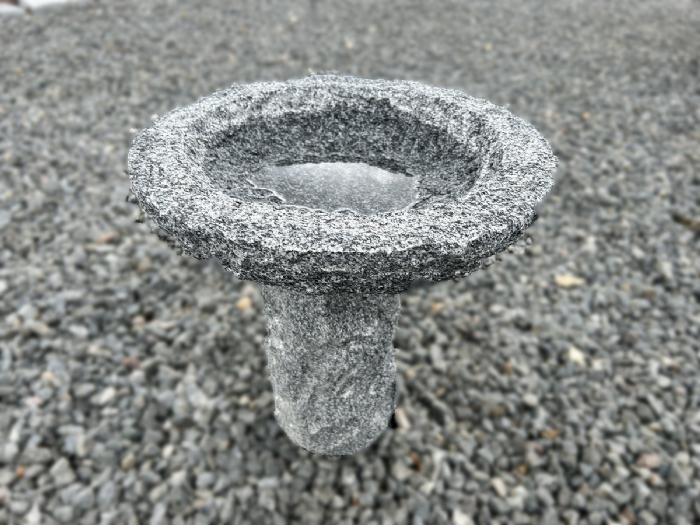 Fuglebad lavet i gråsort granit.