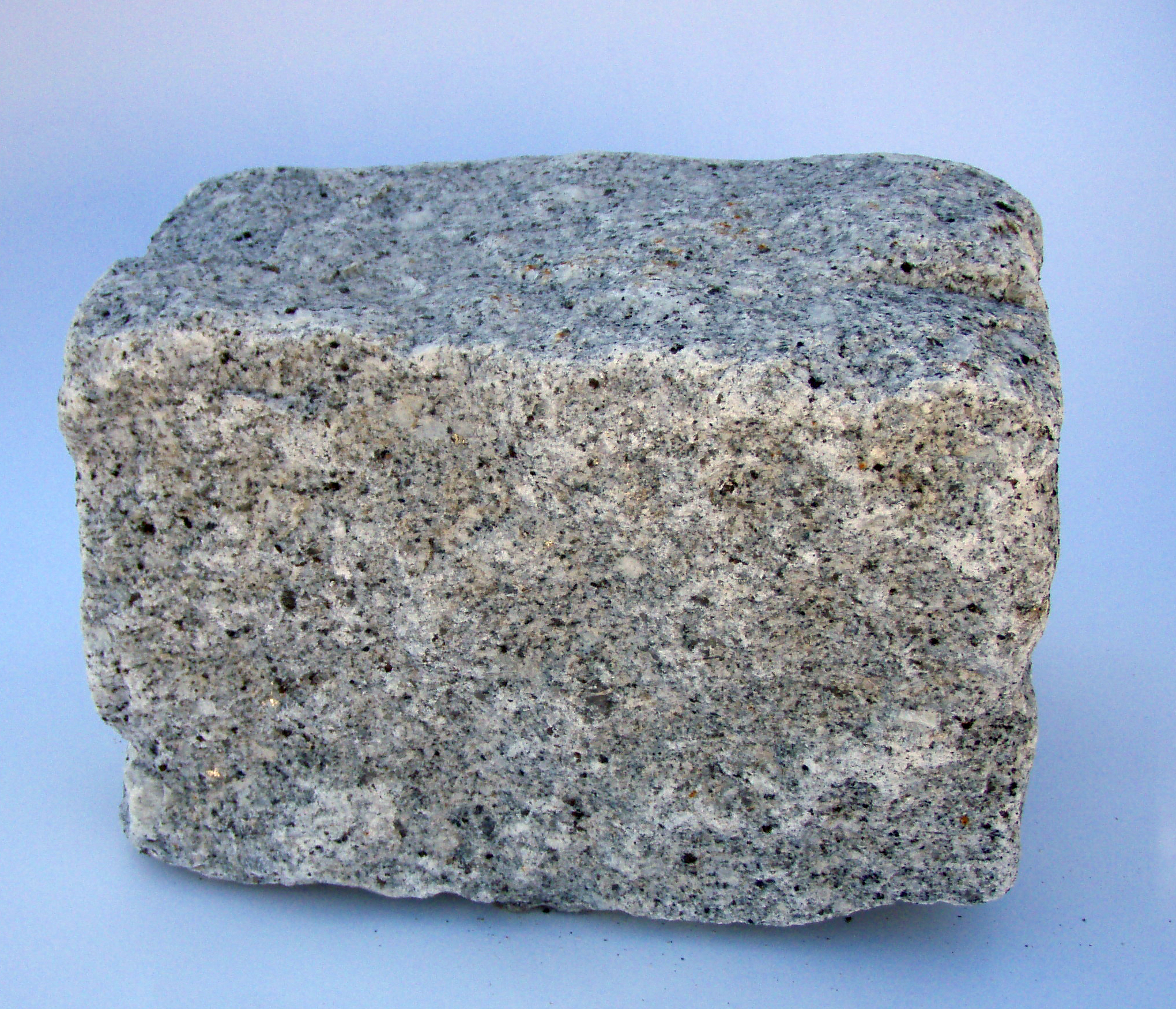 Særdeles smuk grå portugisisk granitbrosten. Denne belægningssten anvendes til gangarealer, bed osv. Den grå Porto granit fremstår som lysegrå med lidt mørke nister.