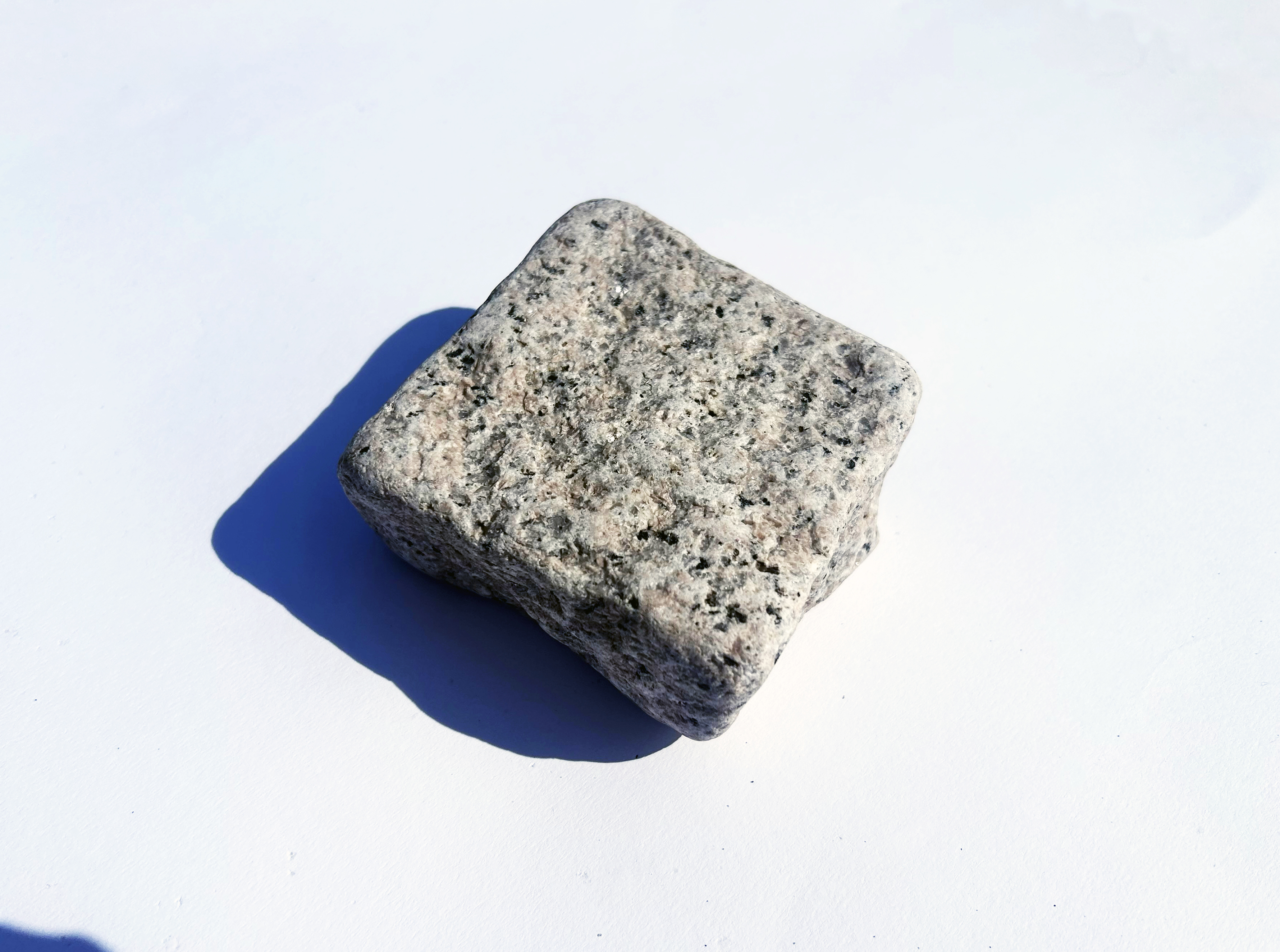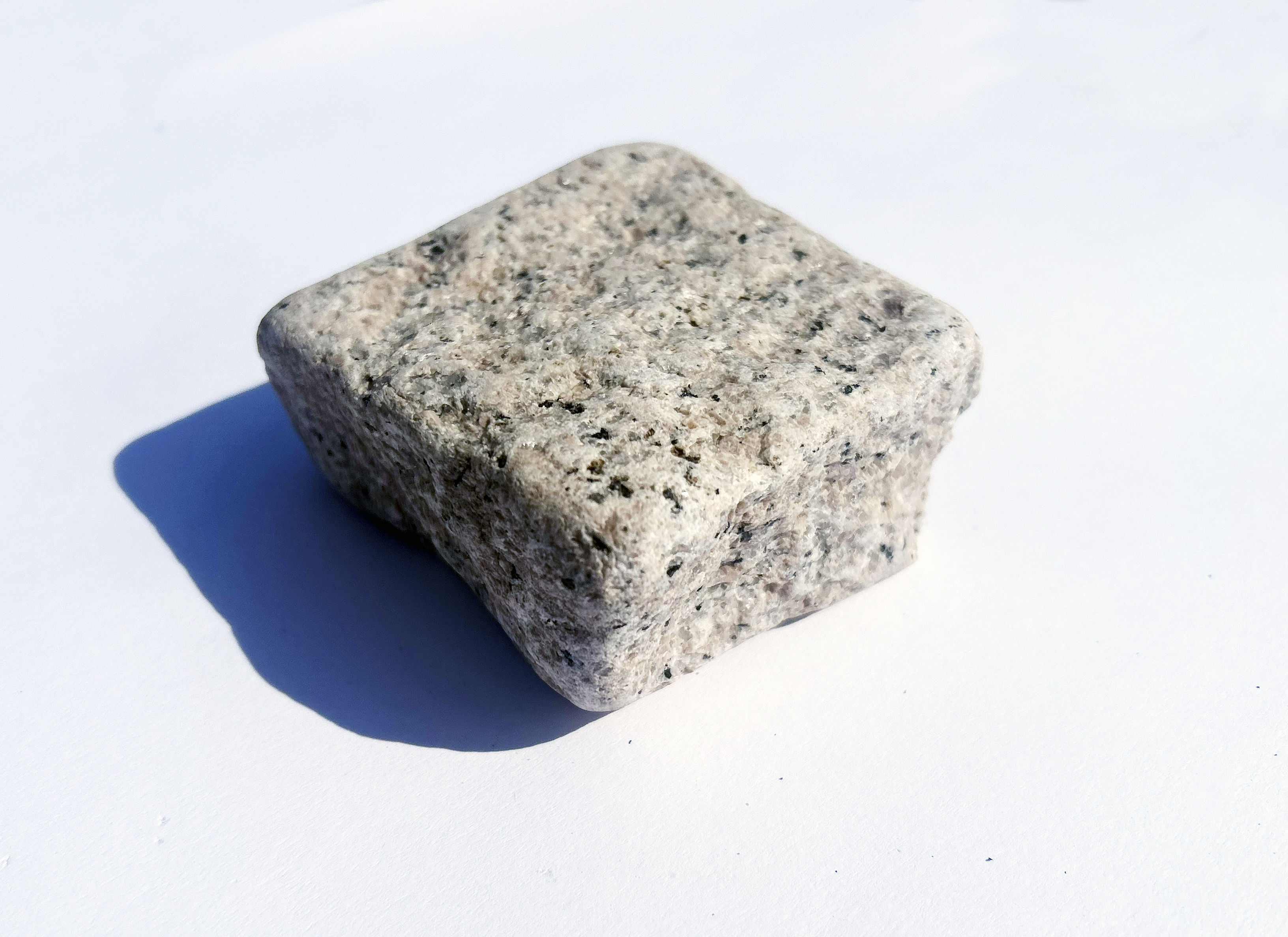 Chaussésten i ca. 5 cm tykkelse - halv tykkelse af normale chaussesten. Denne sten har en tromlet, og derfor lettere blød overflade og kant. Den er produceret i lys rosa granit. Ideel til havebede eller lignende.