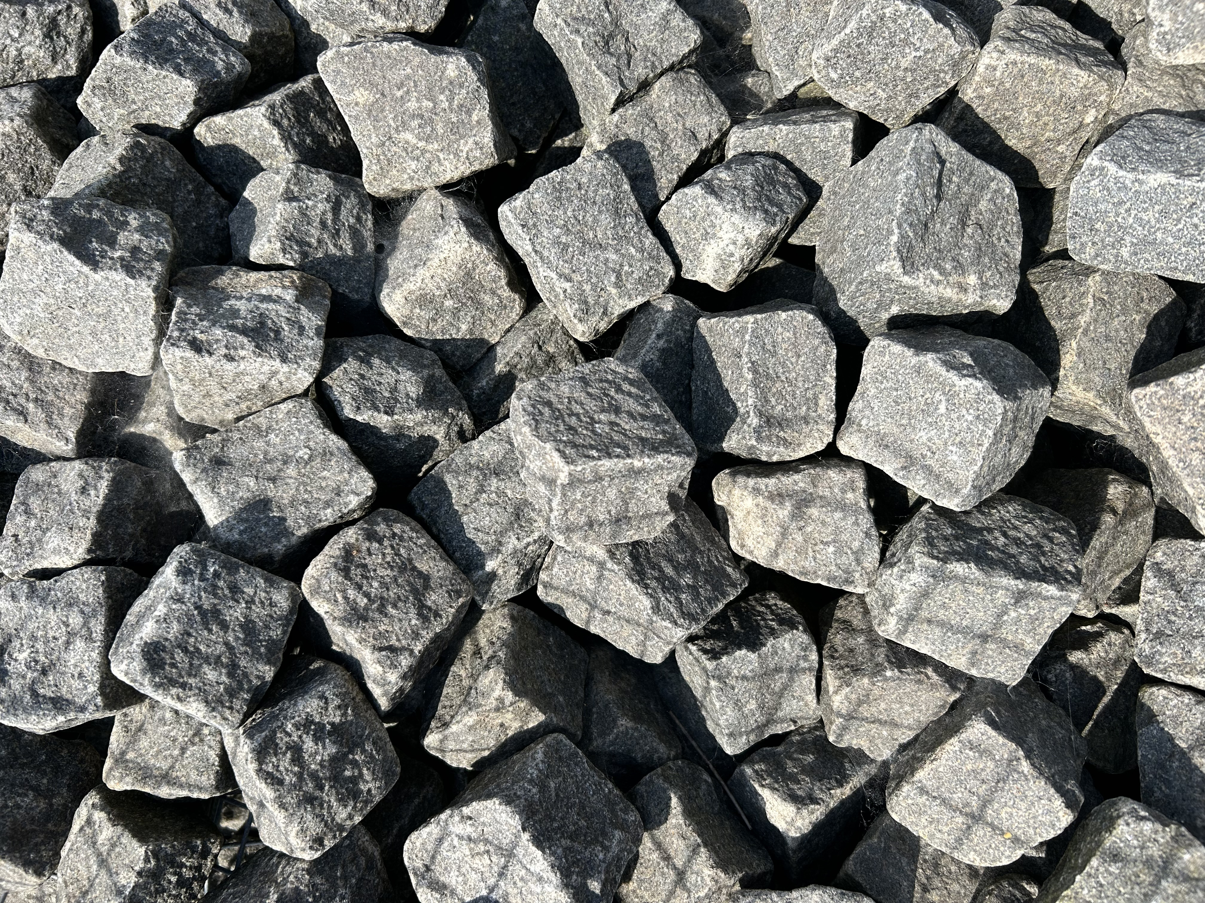Små mosaiksten i bornholmsk blå rønne granit.