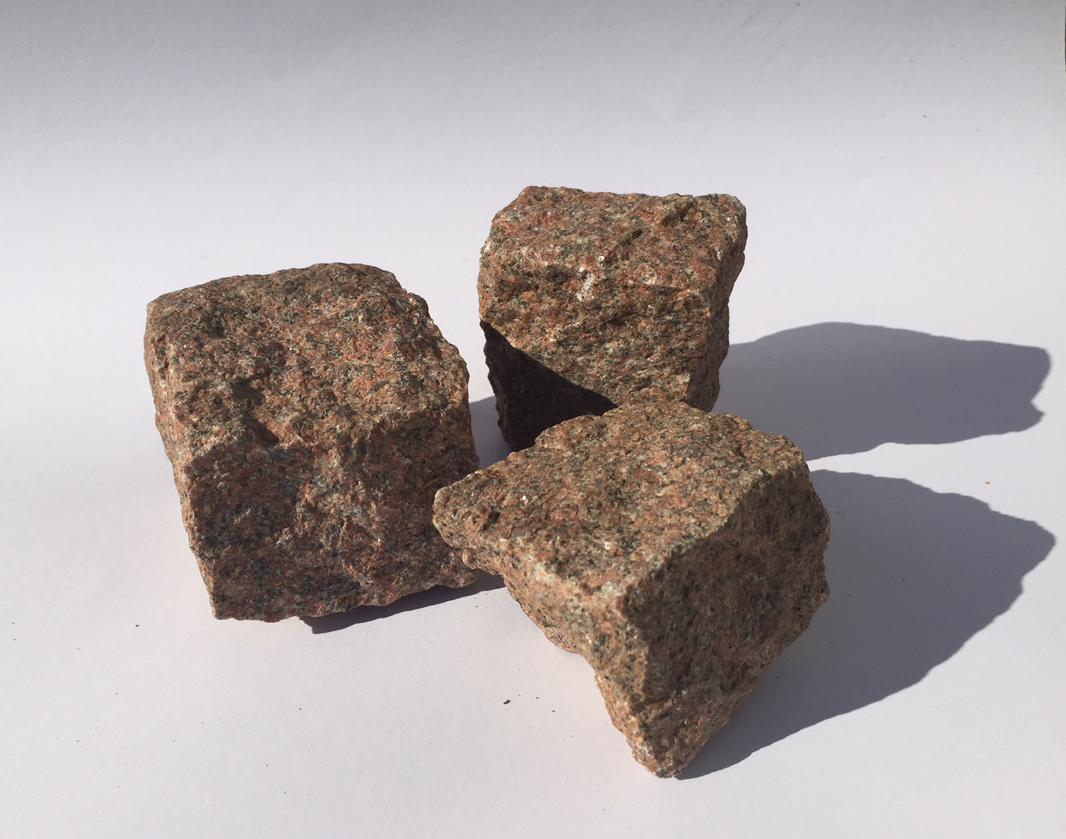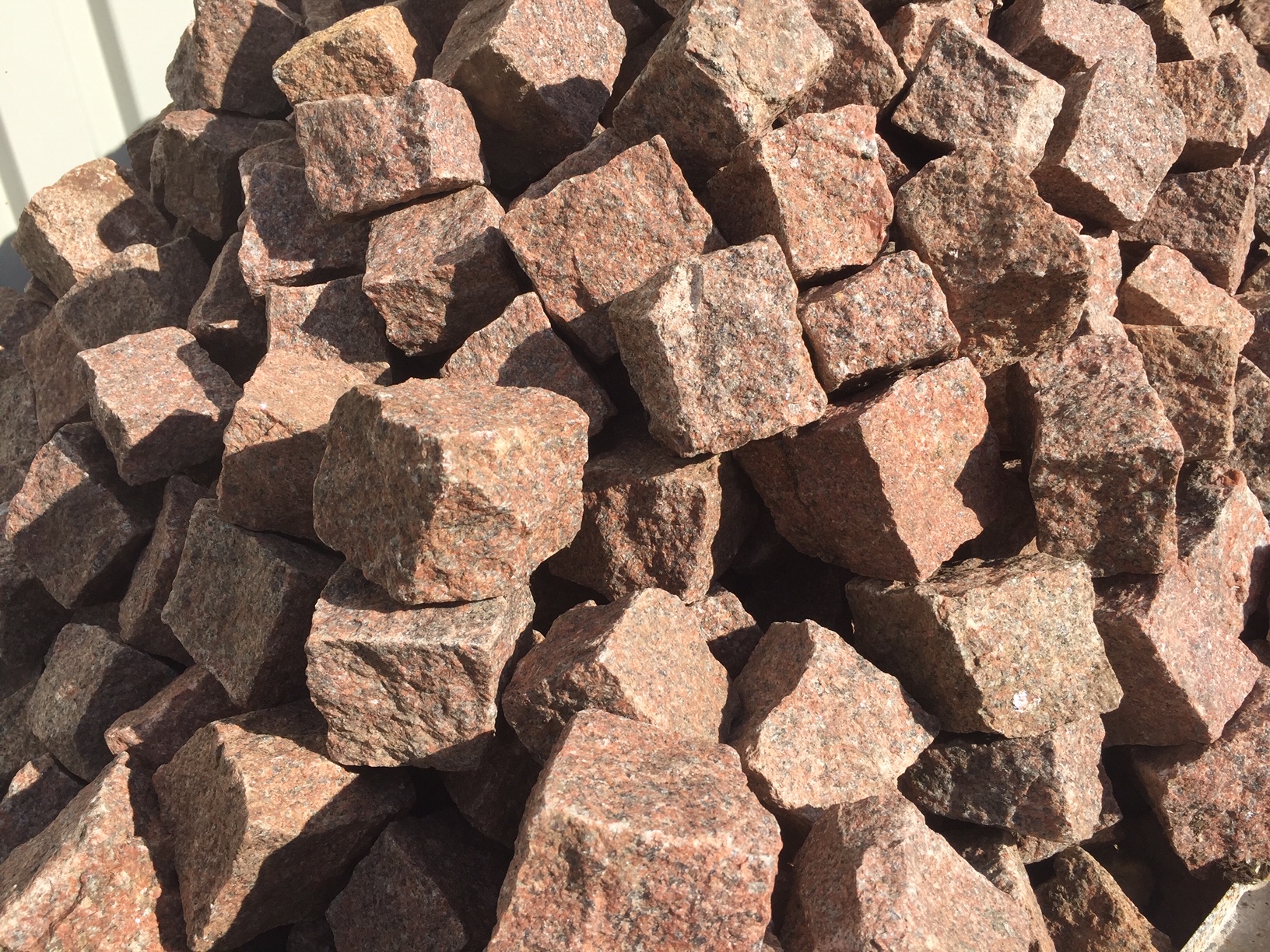 Små mosaiksten i rød indisk granit.