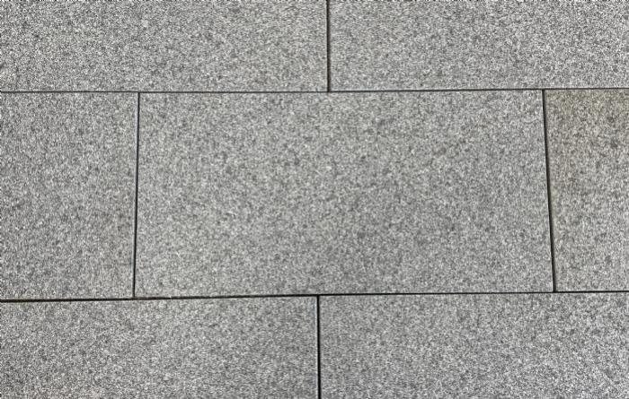 Granitfliser i gråsort granit med skridsikker, jetbrændt/flammet overflade.