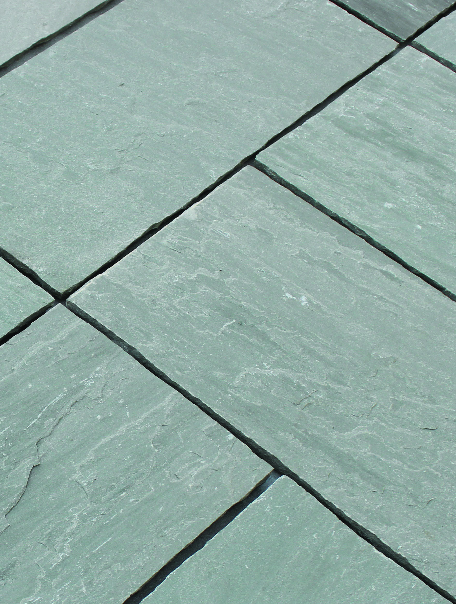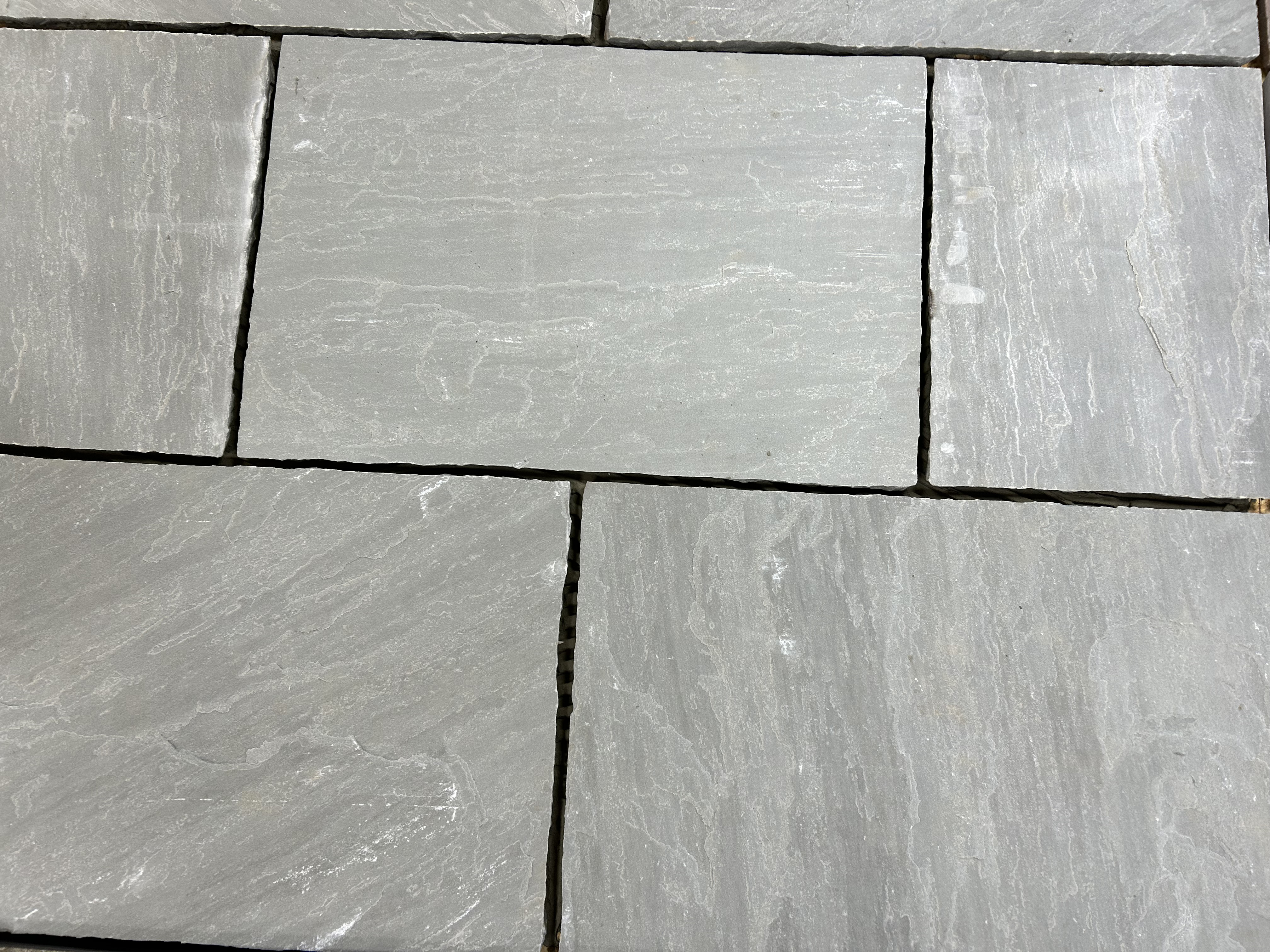 Grålige sandsten i kalibreret tykkelse. Velegnede til eksempelvis terrasse eller trappe, da de er ens i tykkelsen på ca. 2,2 cm. Sandsten er en natursten som i sin overfladestruktur minder om skifer. Flisen er dog mere ens i struktur og farve end skifer, og så har den fordelen at den kan bruges udendørs. Sandsten kan sagtens bruges udendørs, da den rustikke overflade gør den skridssikker i vådt vejr; desuden er den også frostsikker.
