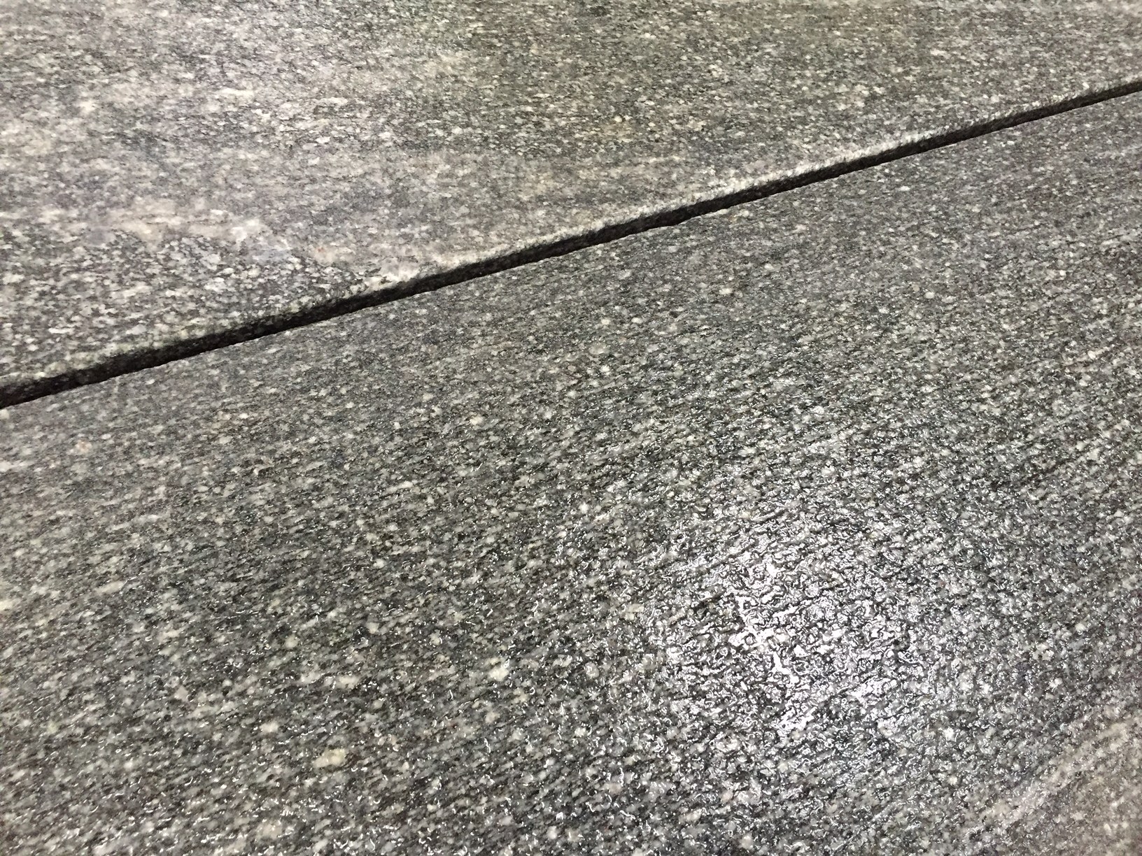 Jetbrændt overflade, der gør flisen skridsikker - også i vådt vejr. Meget spændende natursten, der kan have meget markante aftegninger og glasårer.
