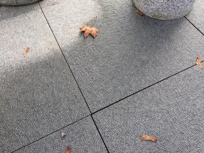 Granitfliserne har stokhugget overflade, der gør stenen meget skridsikker.
