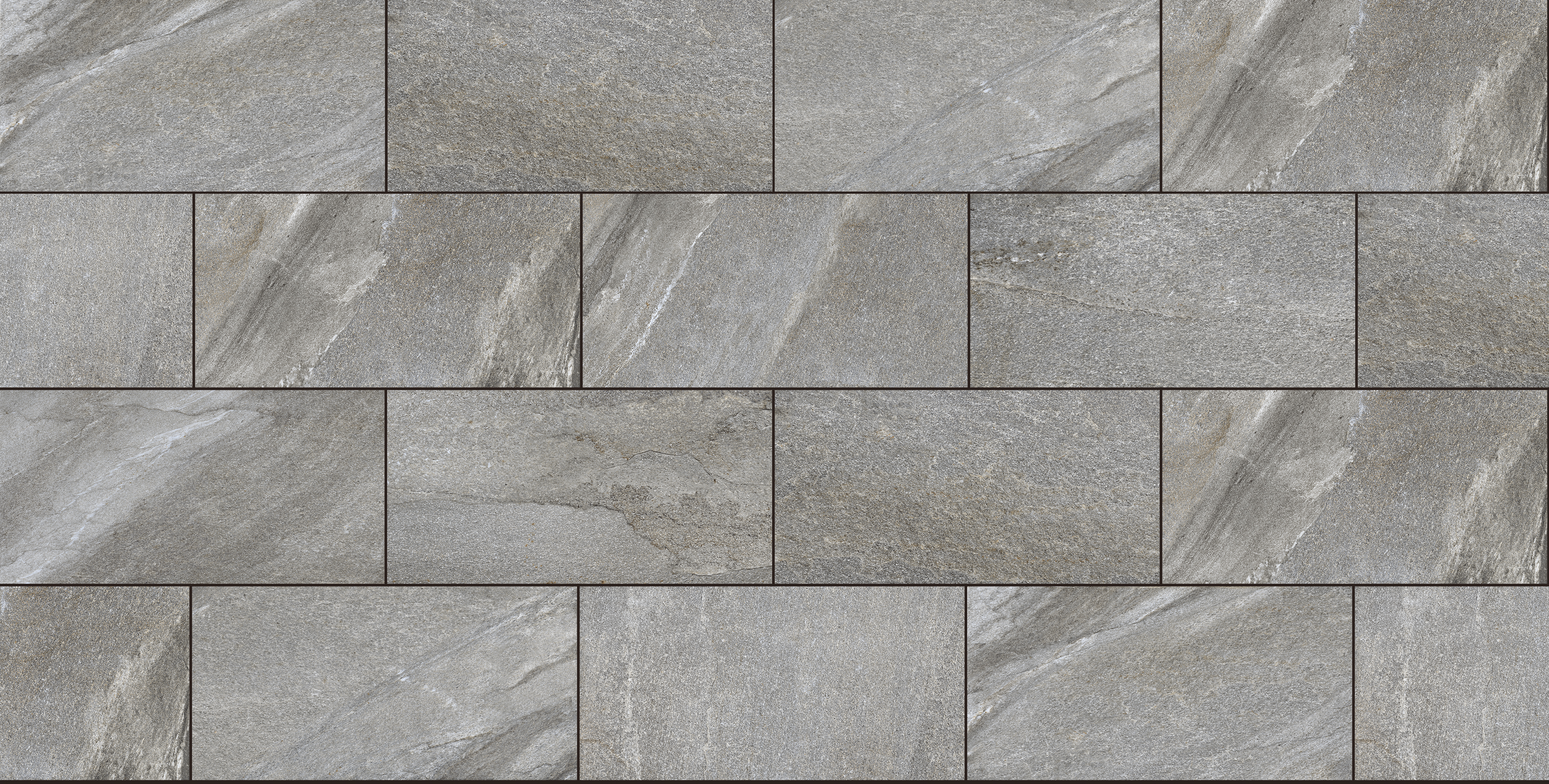 Smuk naturtro keramisk flise med skridsikker overflade i mørkegrå nuancer. Ligner til forveksling natursten .