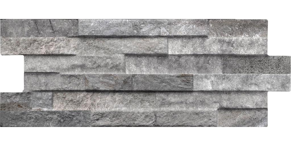 Keramisk vægpanel i blå/grå nuancer Nature Tibet. Denne flise er det perfekte alternativ til natursten, da den er frostsikker og dermed kan holde til at blive monteret som dekorativ vægpanel både inde og ude.