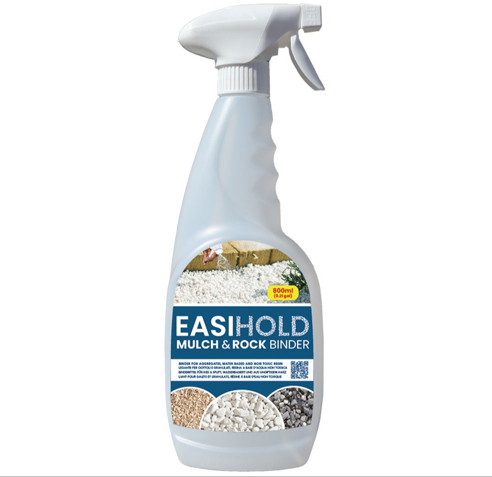 Easihold 800ml i på sprayflaske er et vandbaseret produkt, der binder skærver og småsten sammen. Ved brug af produktet undgår du løse skærver og småsten på fliser, trædesten eller i havebede og græsplæner.