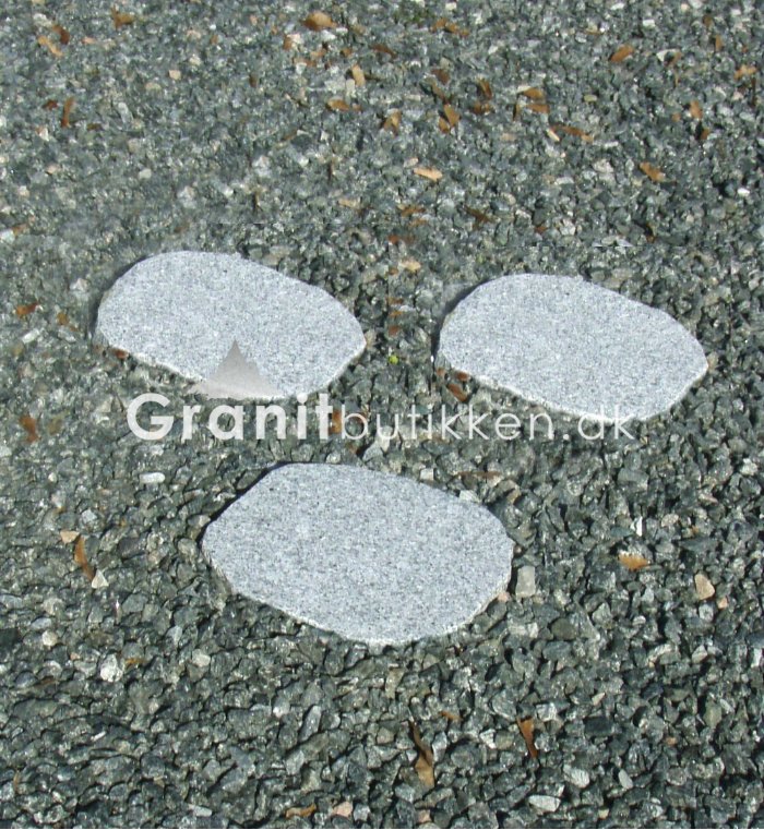 Trædesten i lysgrå granit er også meget anvendelige i private haver.