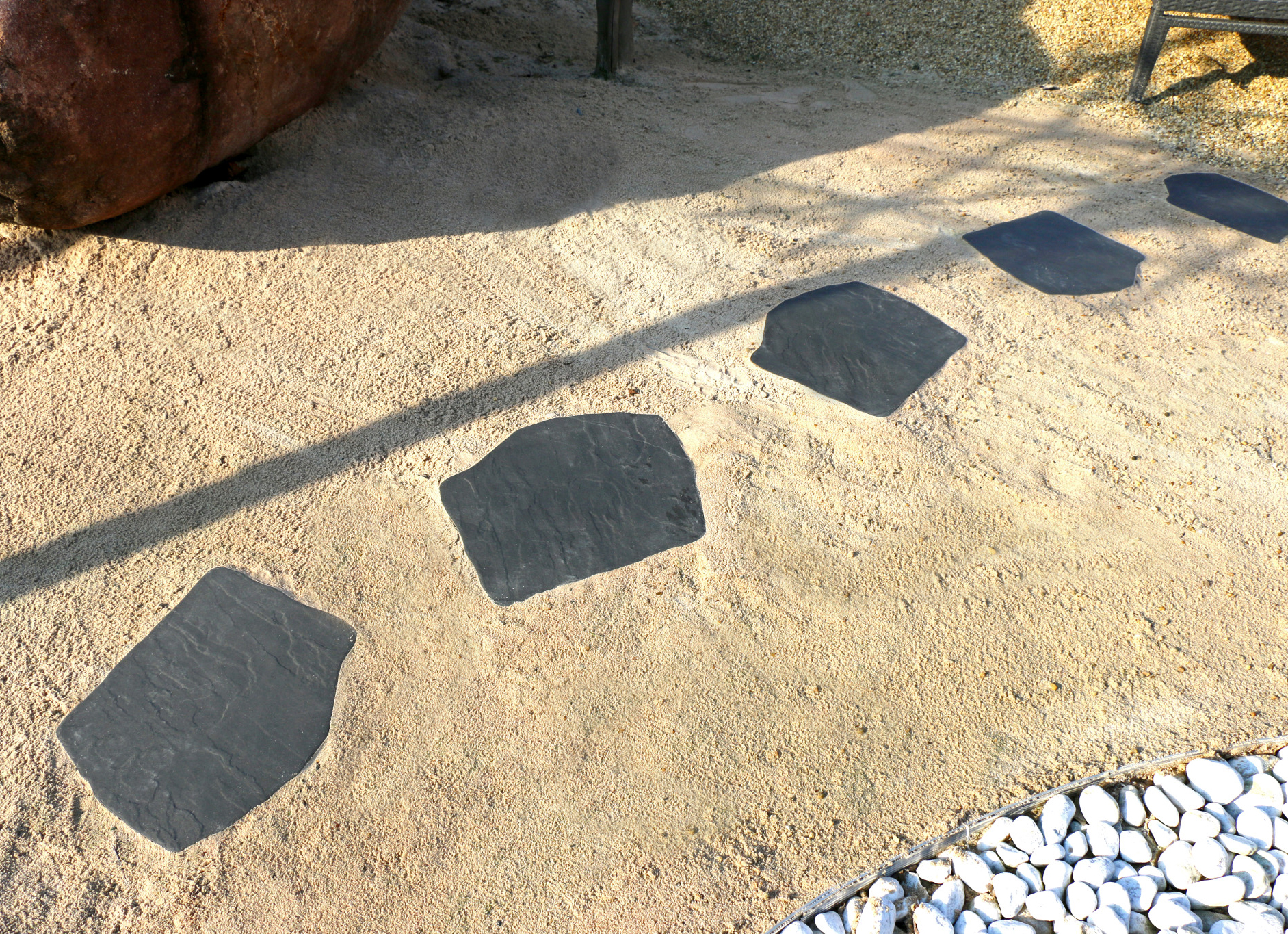 Formen på alle fliser er helt ens, men fliserne kan vendes i forskellige vinkler for at få et mere irregulært udtryk på gangstien.