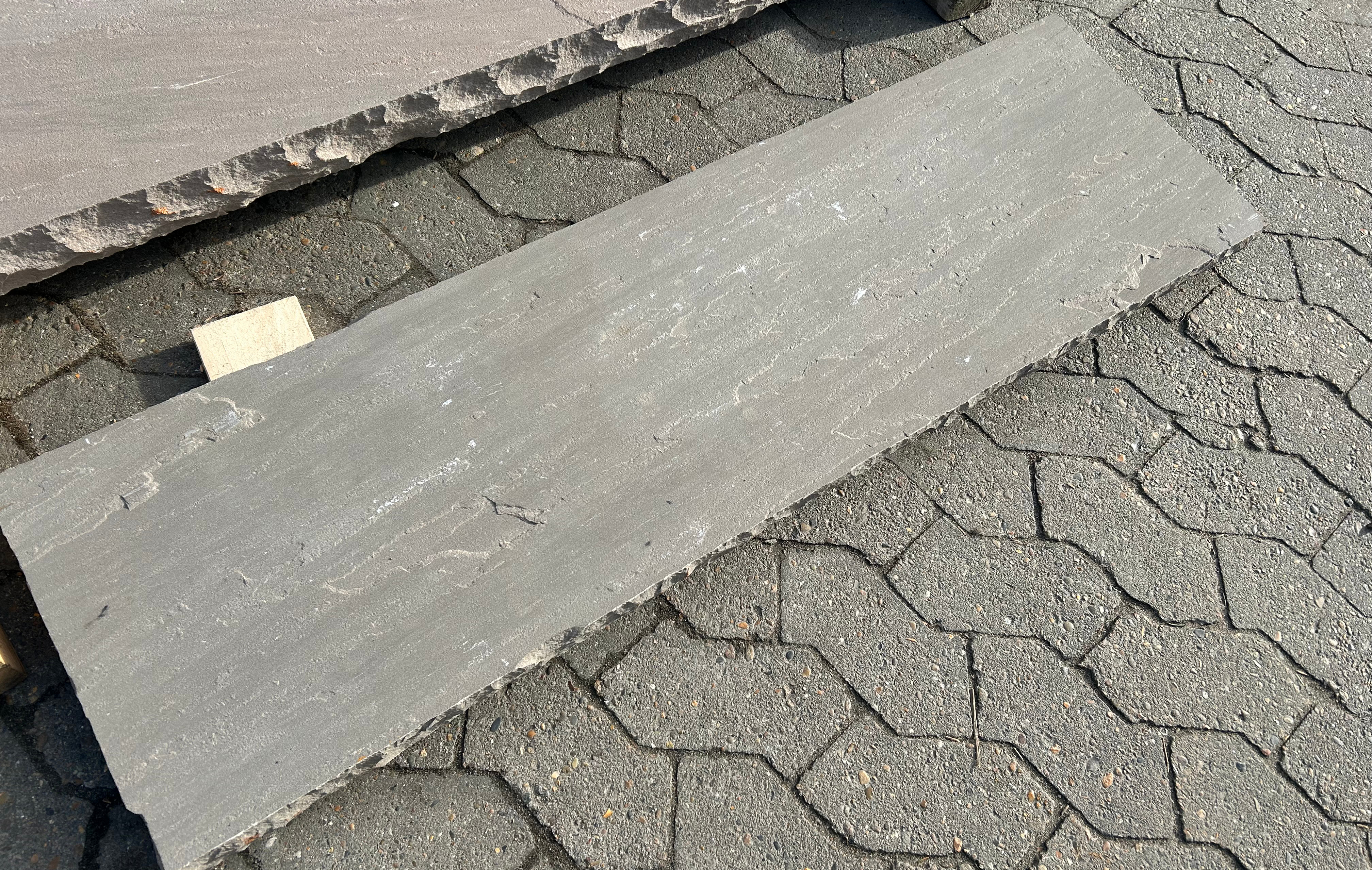 Svelle i brun/rødlig sandsten. Pladen har naturkløvet overflade på top, front og to ender. Den kløvede overflade gør, at den er skridsikker selv i regnvejr. Kan også bruges som bænkesæde, trappetrin, bordplade og meget mere.