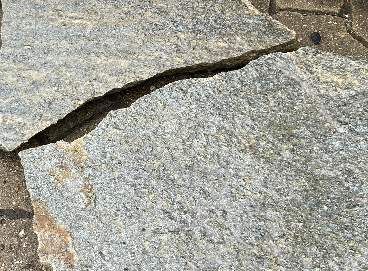 Fliserne kan have små halvrunde boremærker på kanter - dette er en følge af den måde fliserne brydes på. Hvis dette ikke ønskes i belægningen, kan de slås af før nedlægning.
