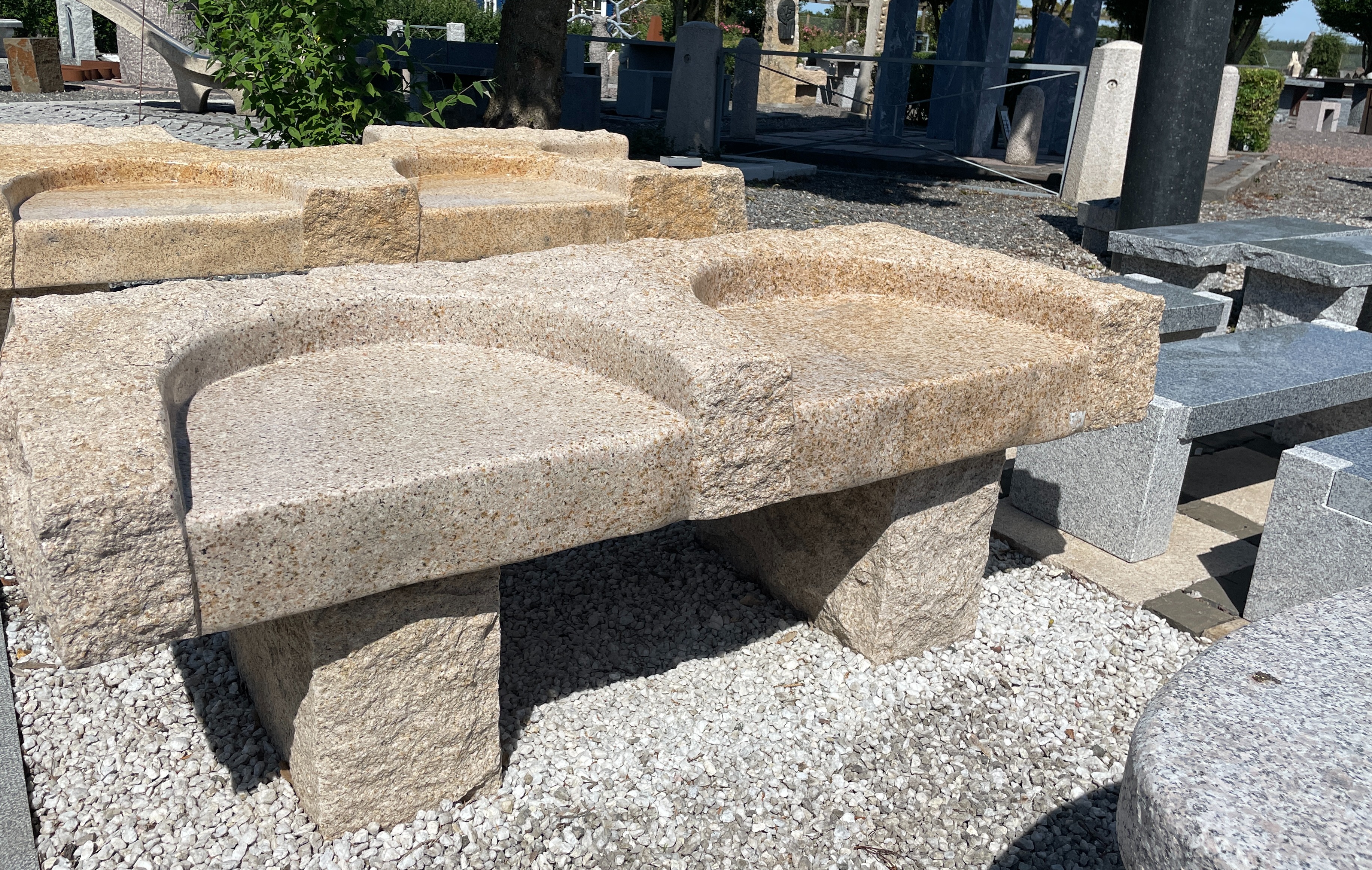 Gul granit parkbænk med to sæder