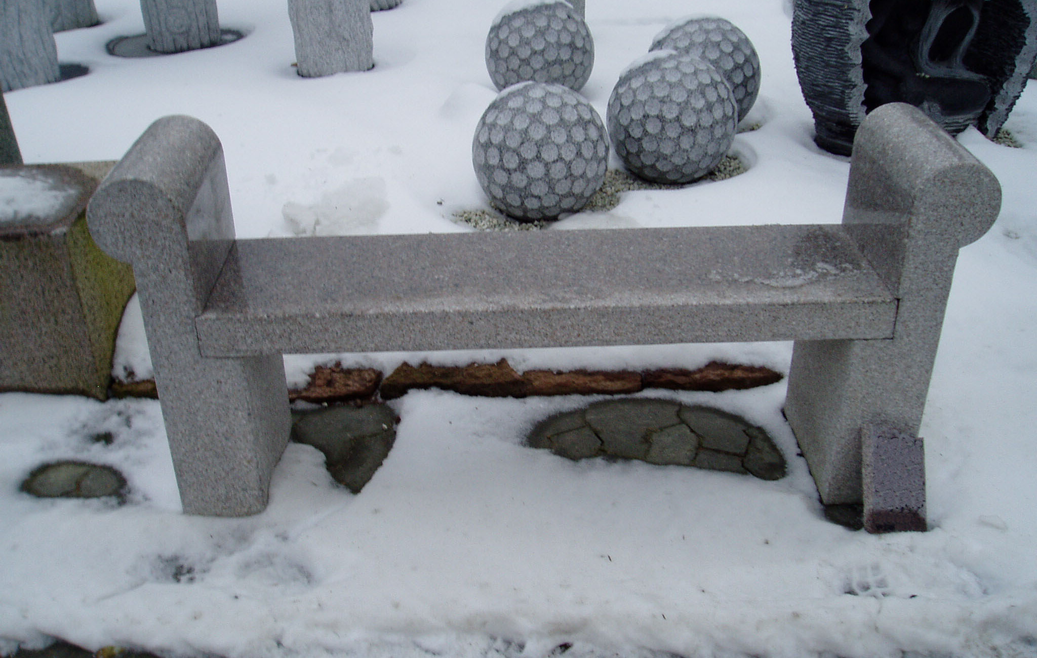Bænk i rosa granit. Bænken har høje afrundede sidestykker, der giver bænken et anderledes udtryk. Bænken er stokhugget og har derfor en ru overflade, men er dog behagelig at sidde på. Den er perfekt til den solrige plads i haven, langs muren og til en kop kaffe. Sidestykkerne er i toppen poleret, så man ikke river trøjen på kanten.