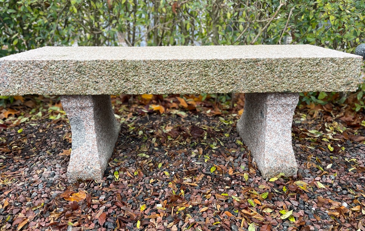 Granitbænken er opdelt i tre dele, hvilket gør den lettere at flytte med fælles hjælp. Den er desuden nem at vedligeholde – som granit kræver den blot en omgang med højtryksrenser, når den trænger til en opfriskning