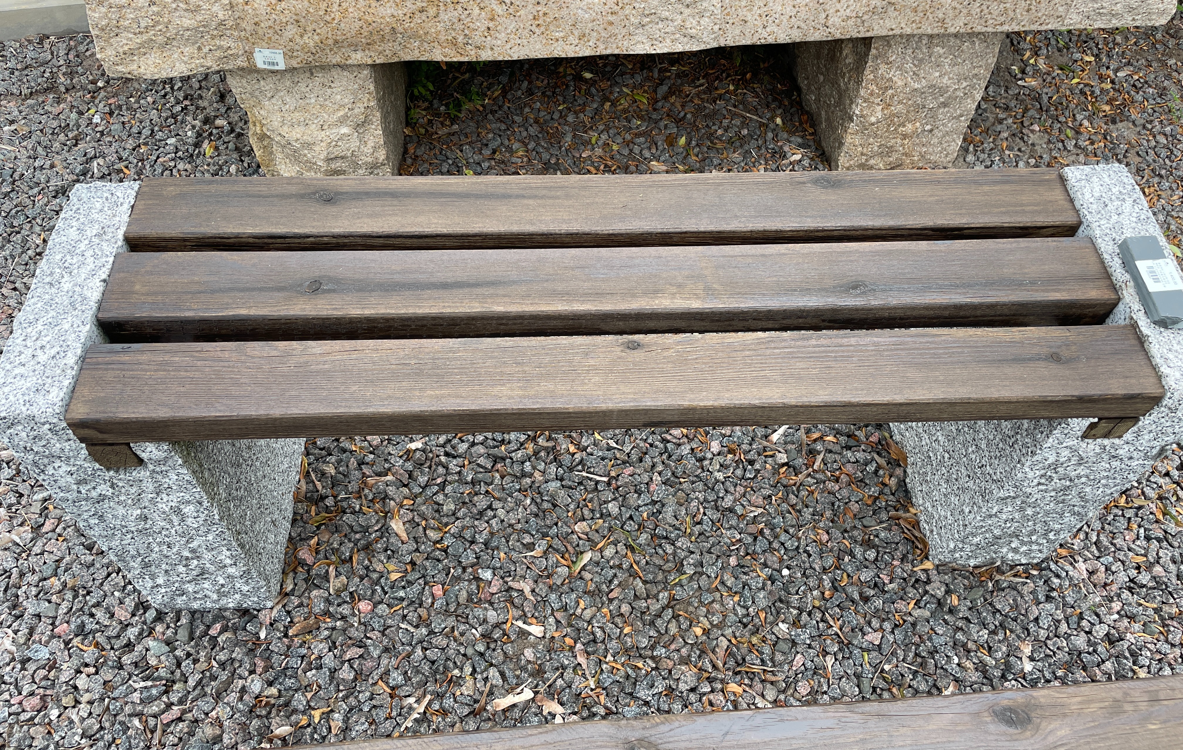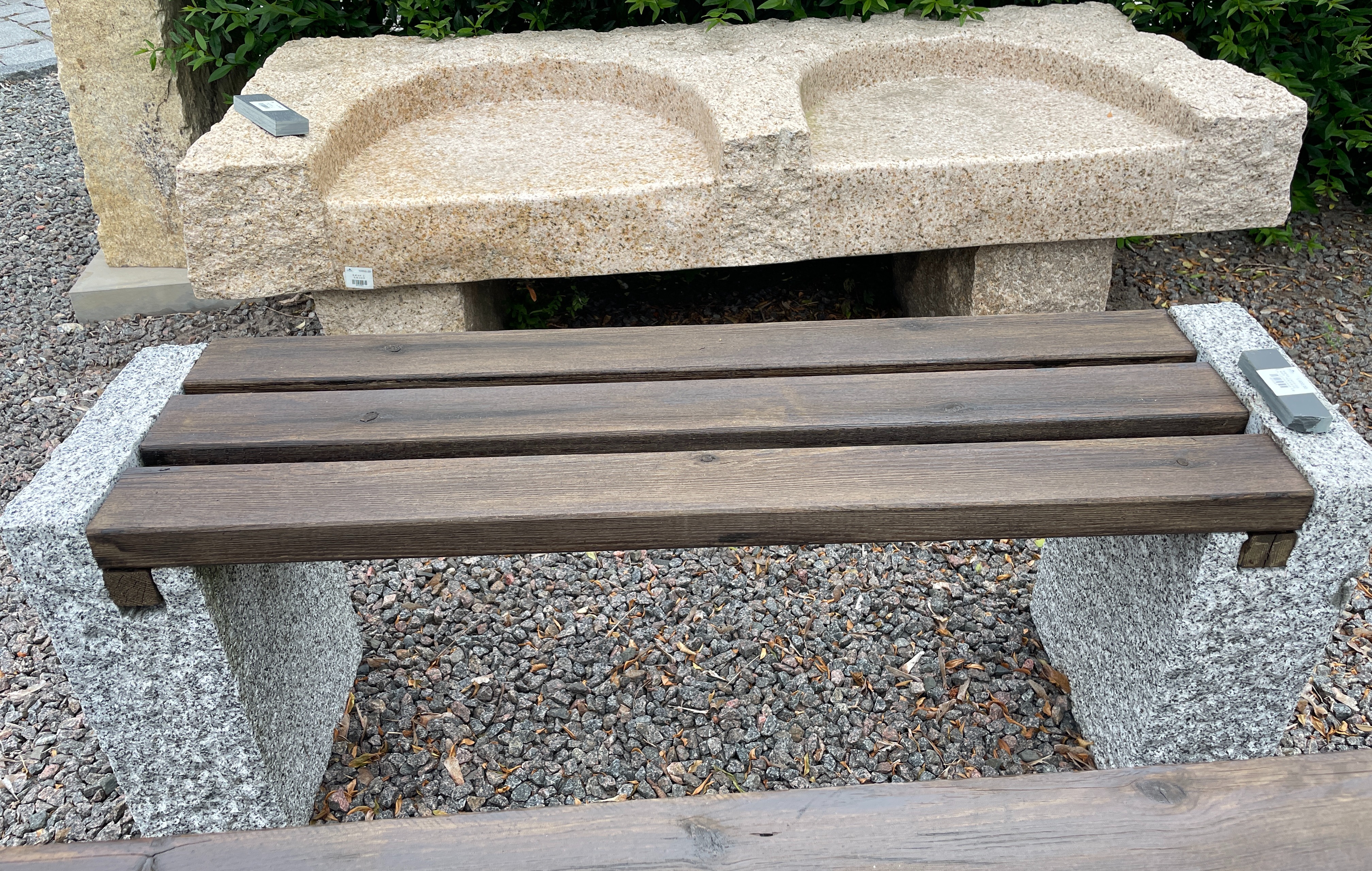 Granit bænk Hannibal med træsæde. Denne lille bænk er perfekt til kirkegården eller et lidt sted i haven.