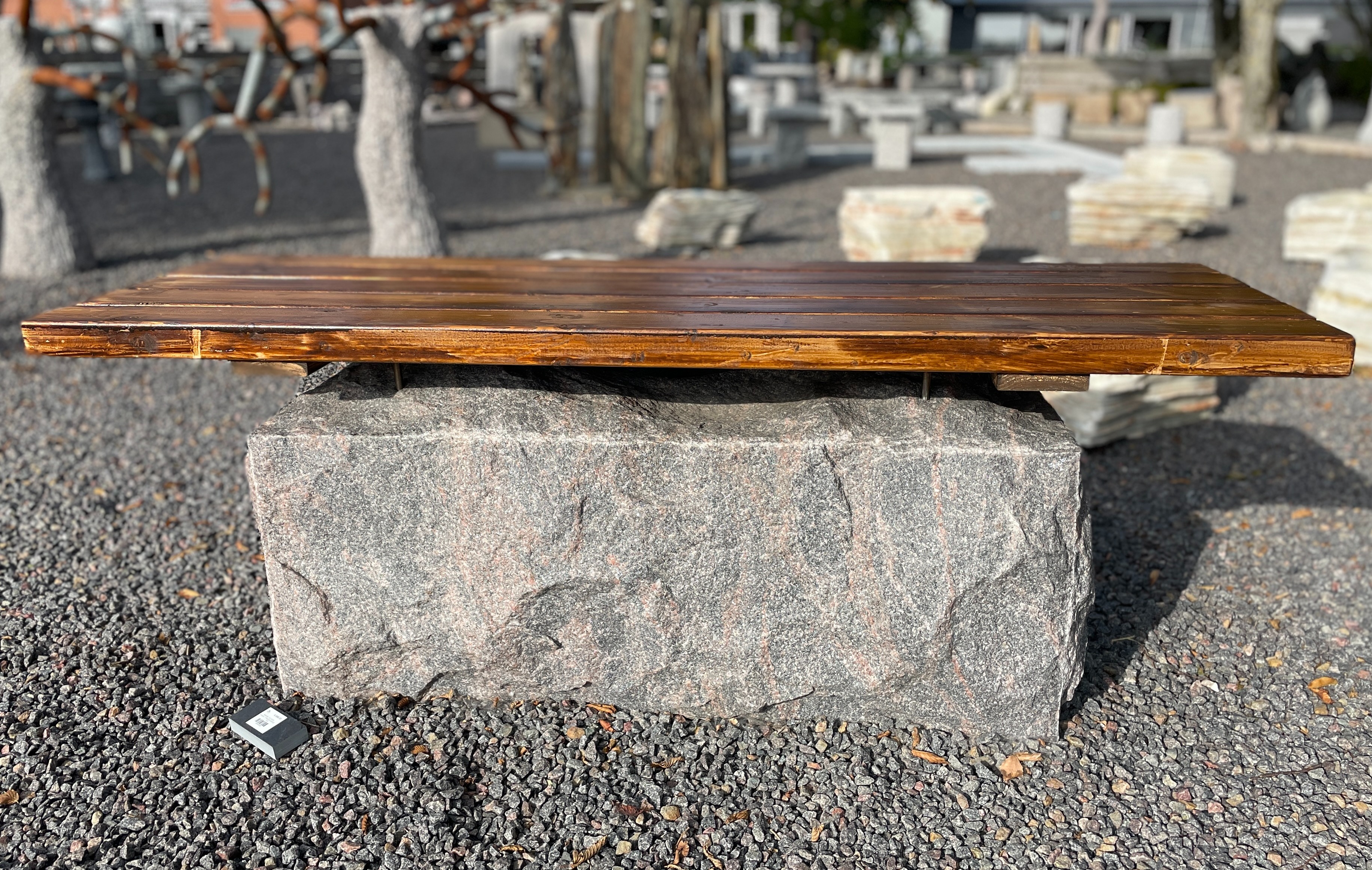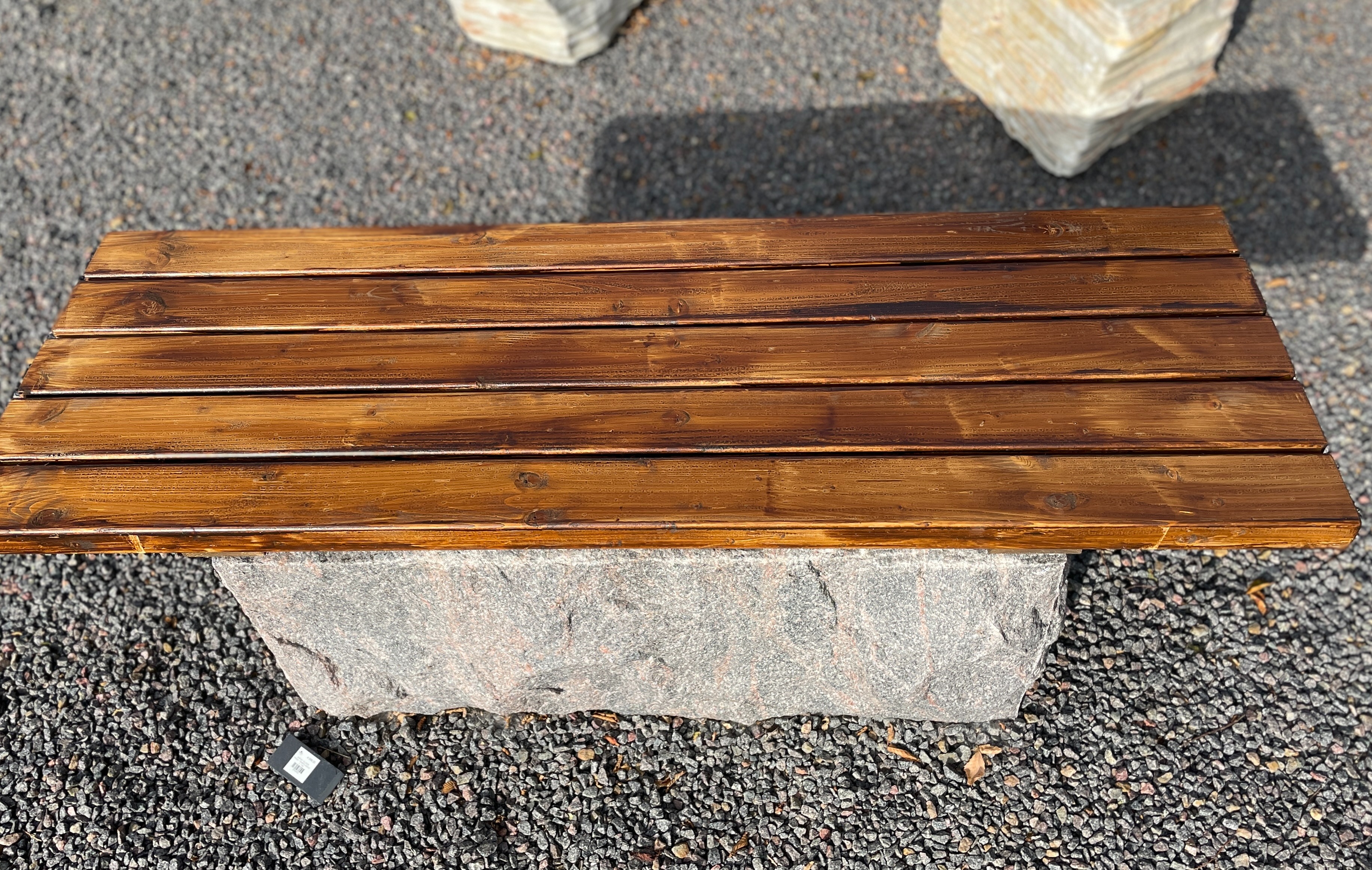 Bænken er opbygget med en underdel lavet af en massiv granitklods og som top/sæde en oliebenhandlet træplanke.