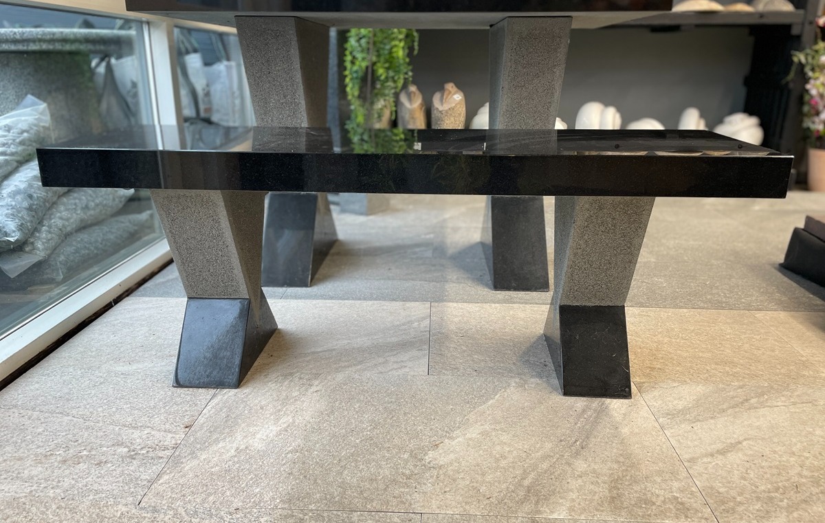 Bænken har polerede detaljer, både på fødderne og sædet, som får granittens farvespil til at stå frem. Det er en massiv granitbænk, der er nem at vedligeholde, og så vil passe ind på enhver terrasse, eller hyggekrog i haven. Bænken kan samle familie og venner til en kop kaffe - bænken passer til granitbordet Lisa.