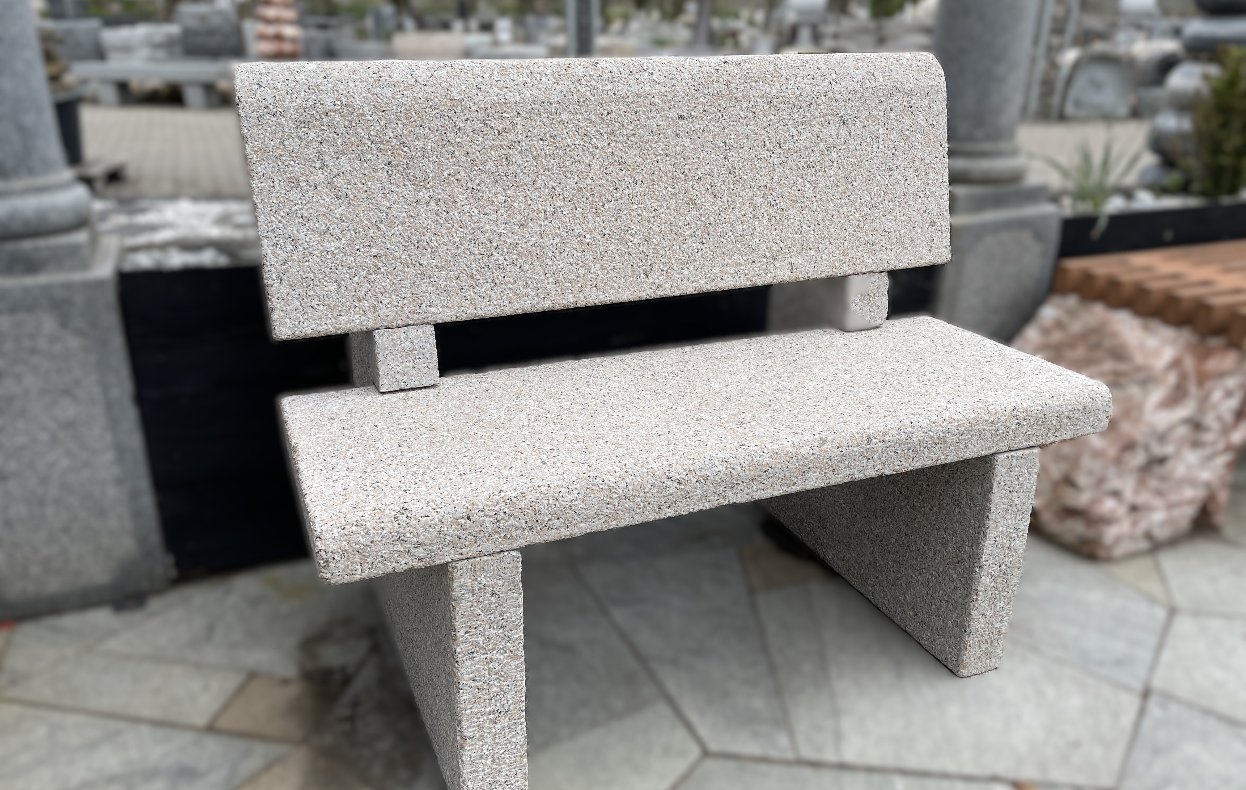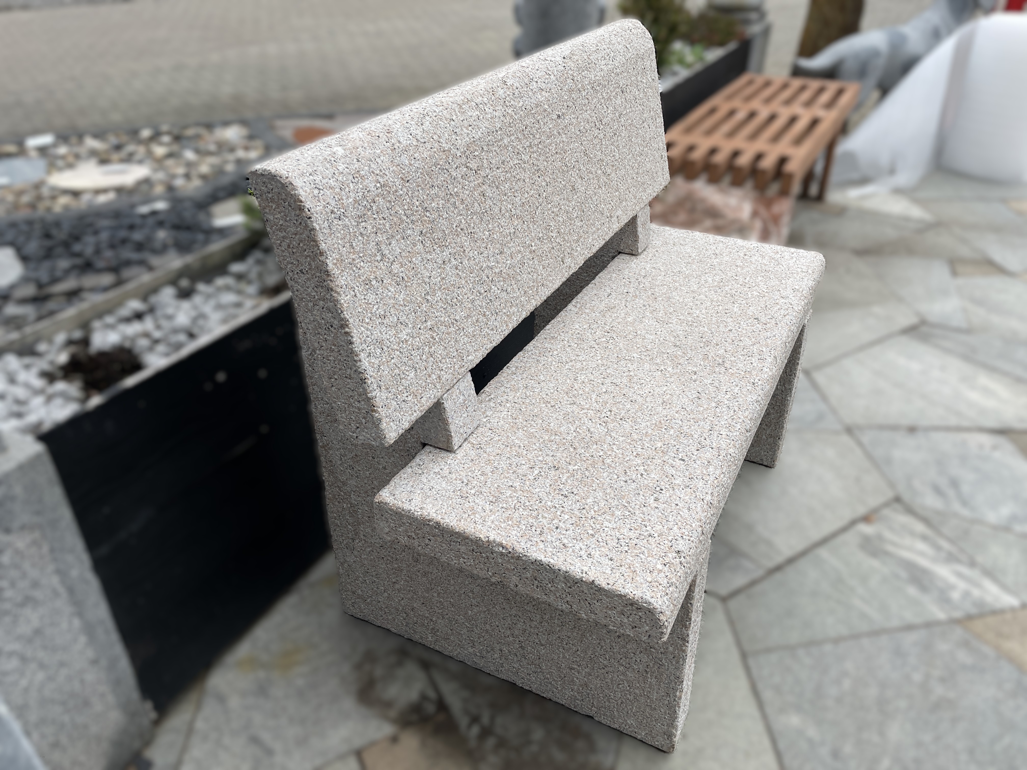Massiv bænk udhugget i rosa granit.