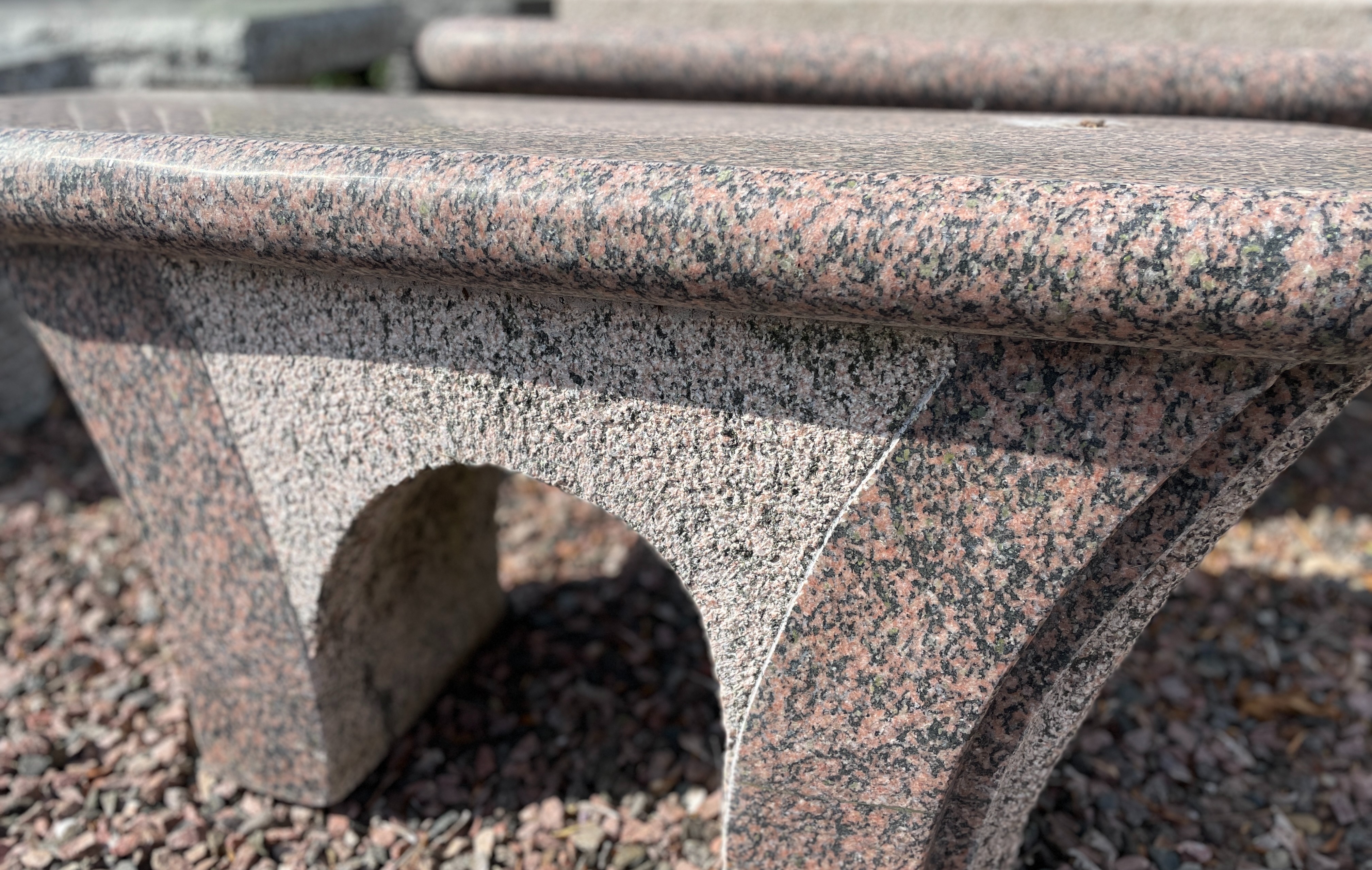 Bænken kommer er lavet i et stykke granit.