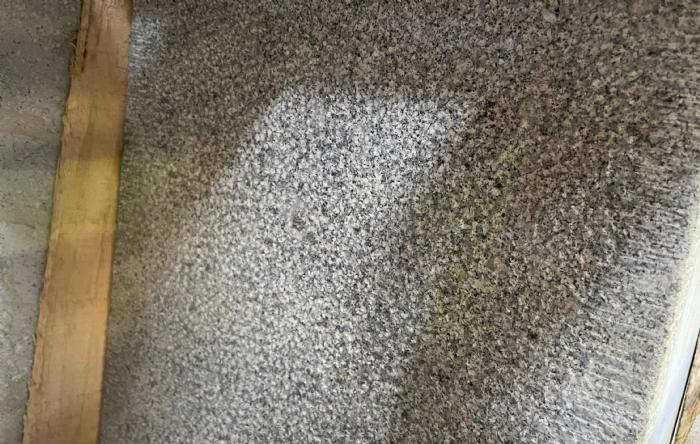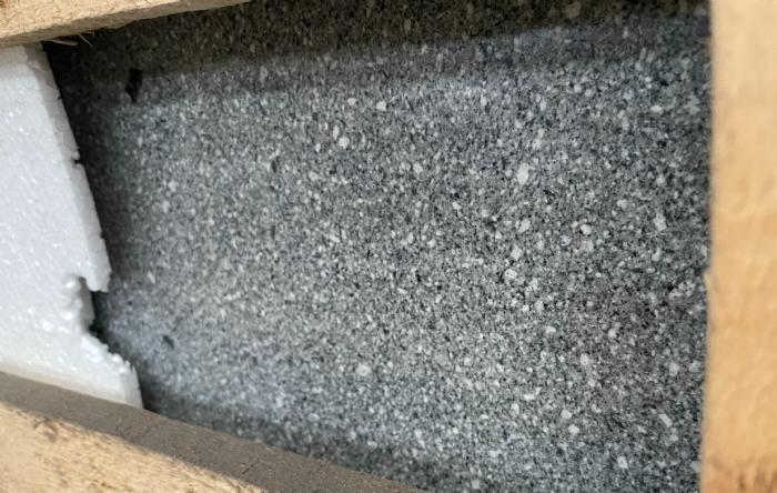 Sædet er poleret, så granittens flotte farvespil ses tydeligt, og det står i fin kontrast til den rå og kløvede sokkel.