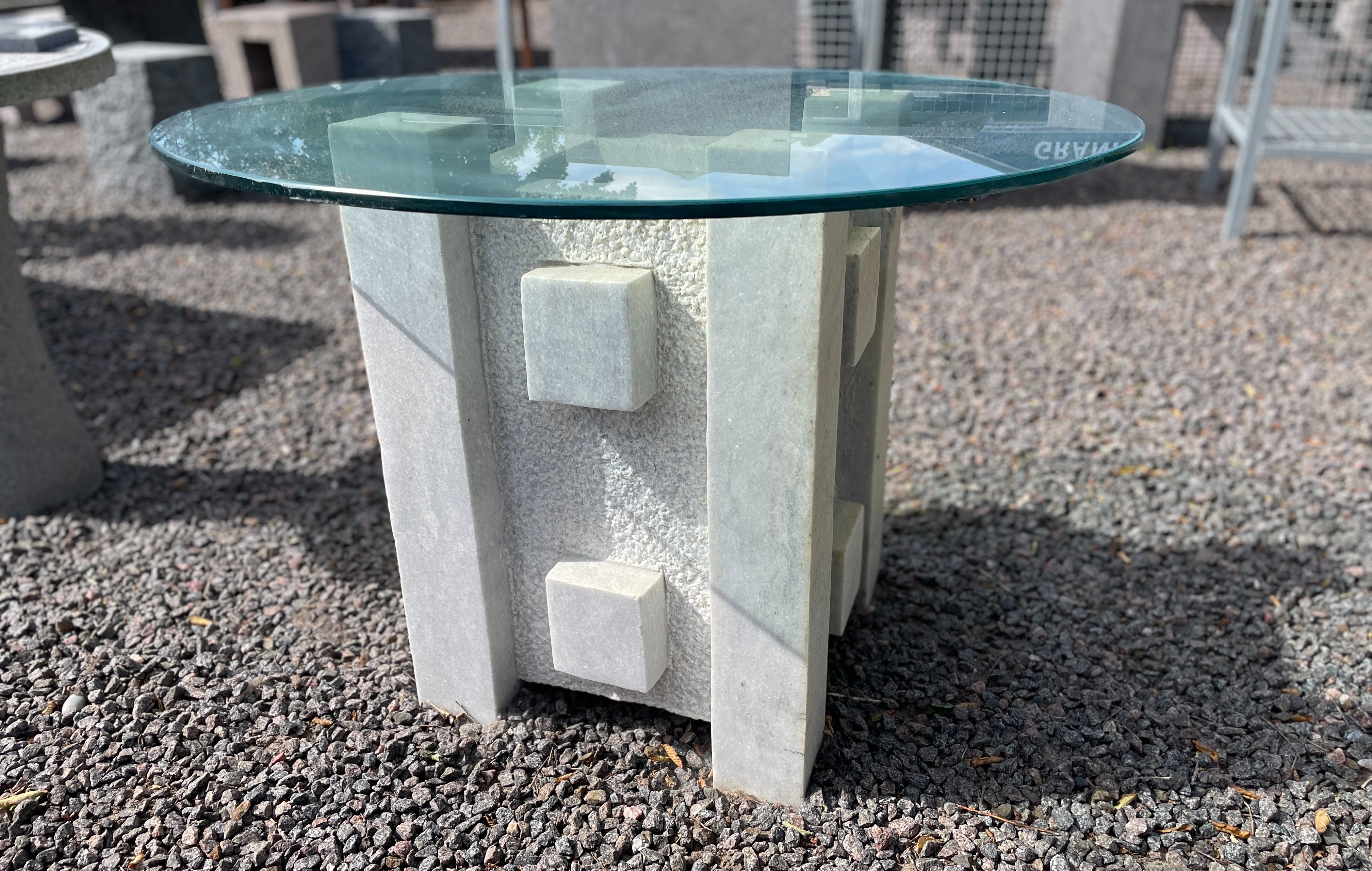 Unikt bord lavet i hvidt marmor med tilhørende glasplade.