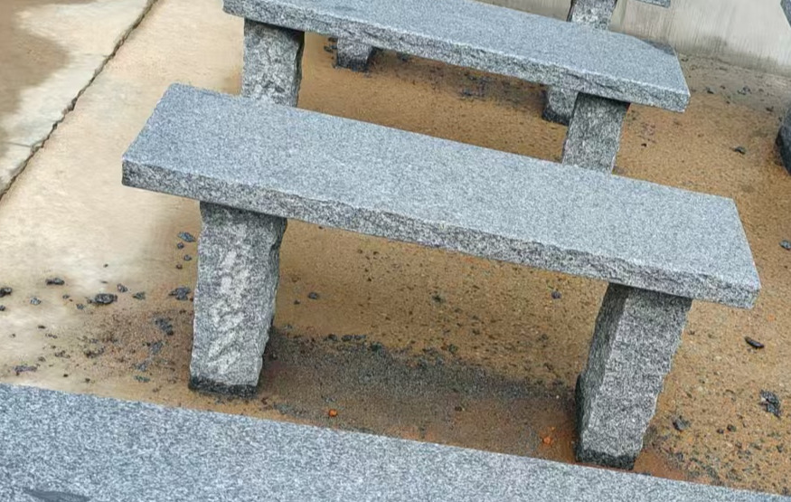 Granit bænk Gitte i gråsort granit med poleret sæde og råkløvede kanter og råkløvede ben.