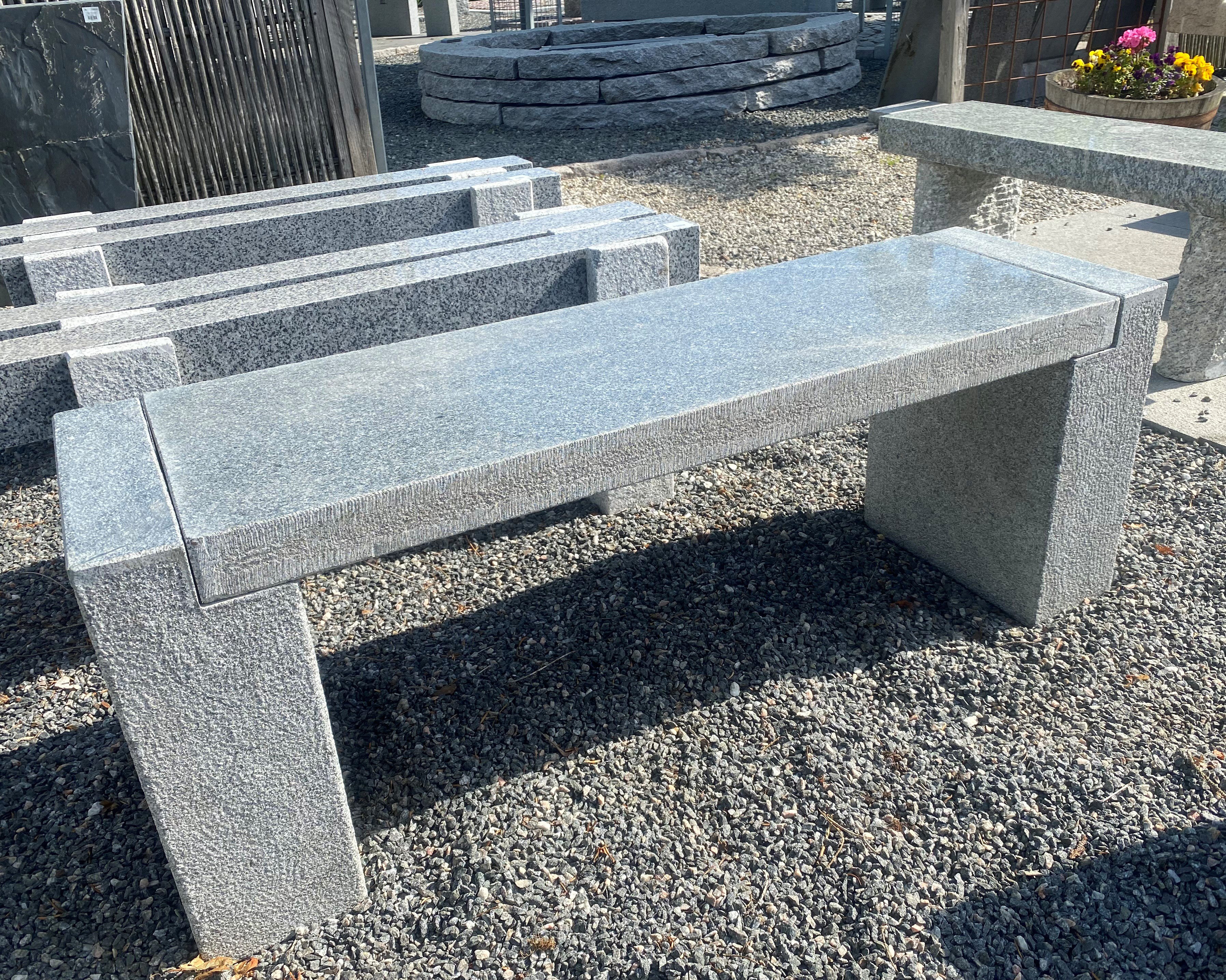 Havebænk i grå granit med blankpoleret sæde. Rigtig fin og ret stor bænk til det helt rigtige sted. Bænken er solid og leveres i 3 dele, som kan placeres efter ønske.