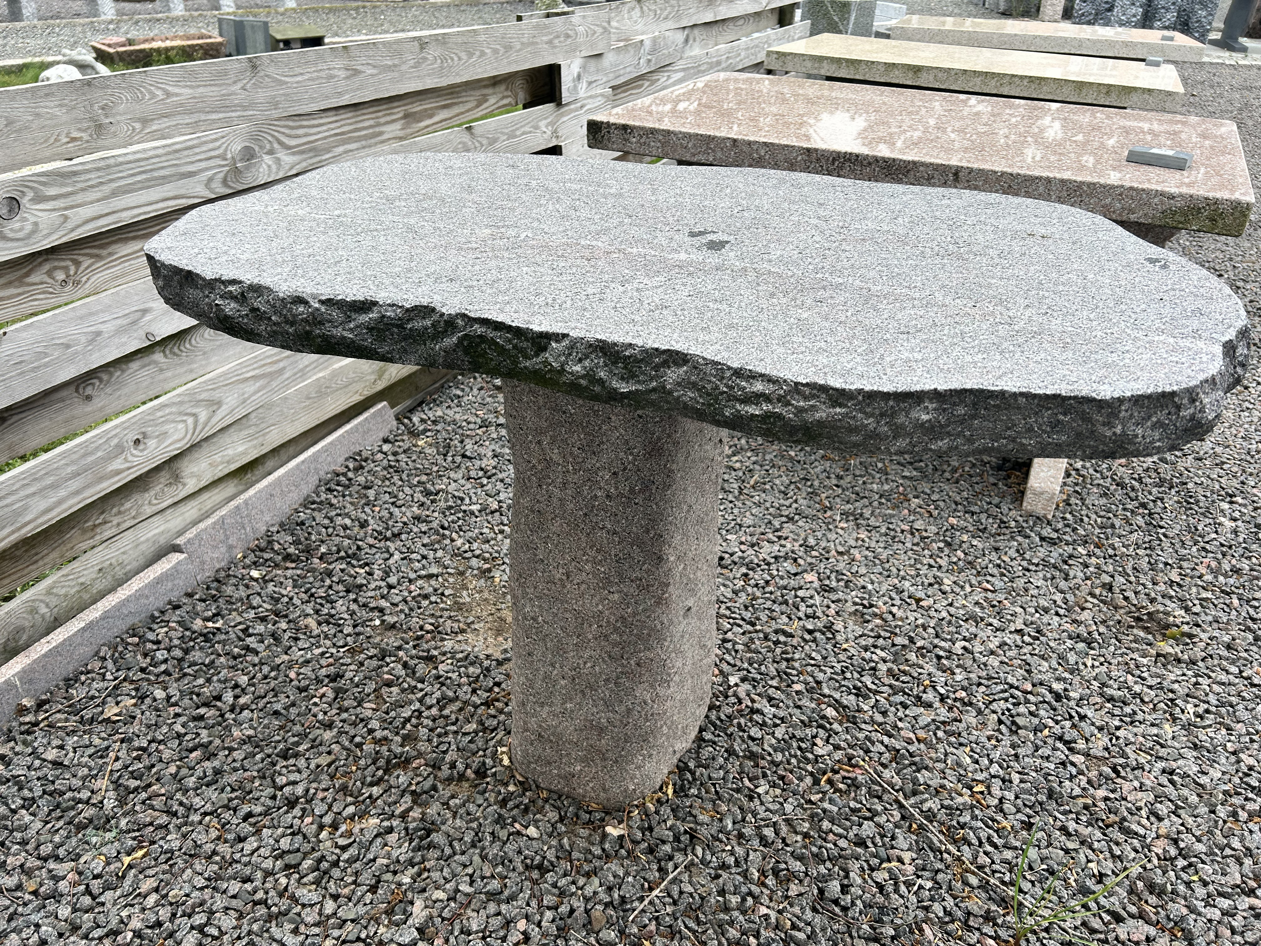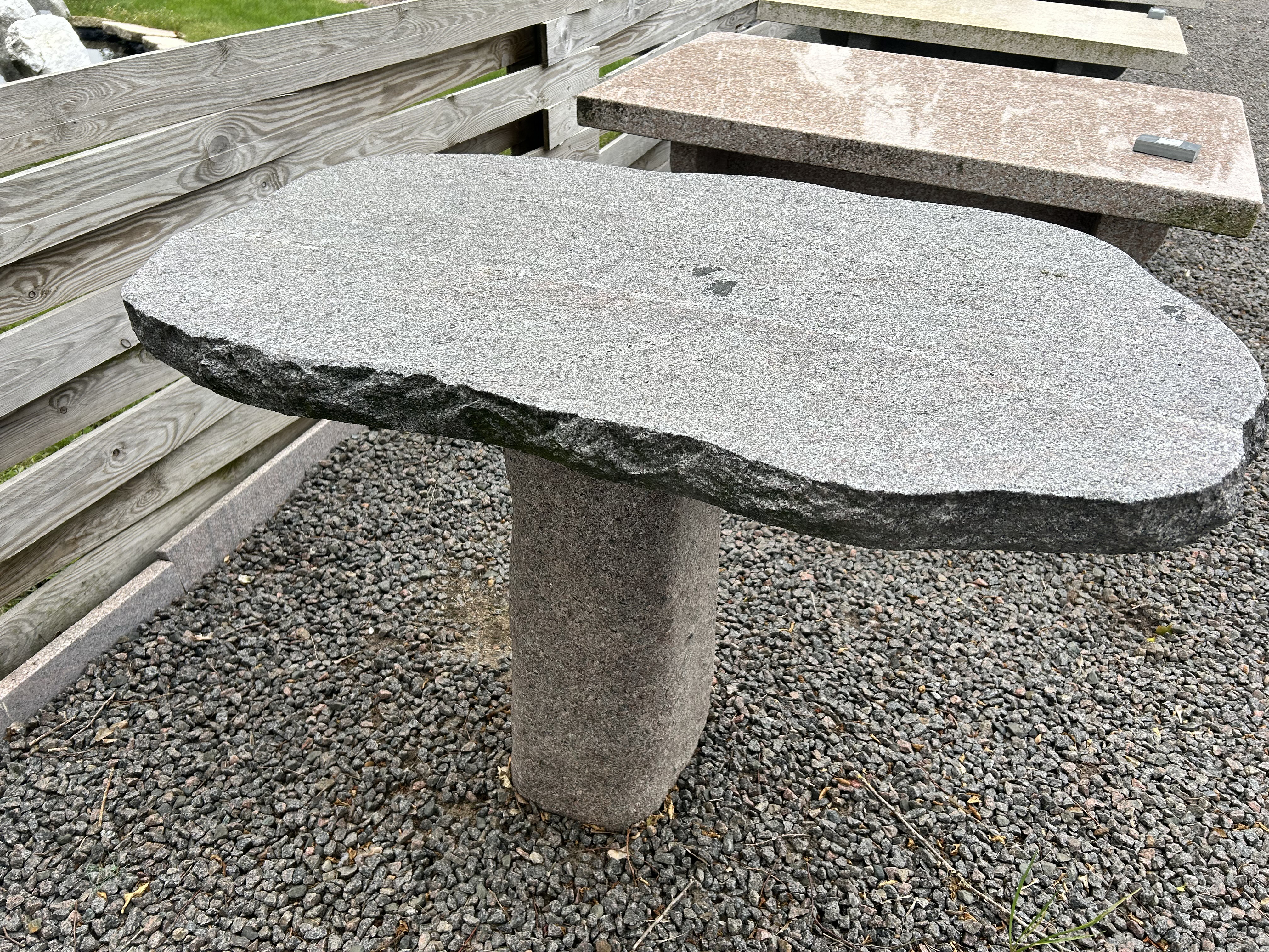 Bord med brændt overflade og kløvede kanter. Bordet er produceret i en blålig granit. Bordet er en unika, så der fås kun denne ene af slagsen.