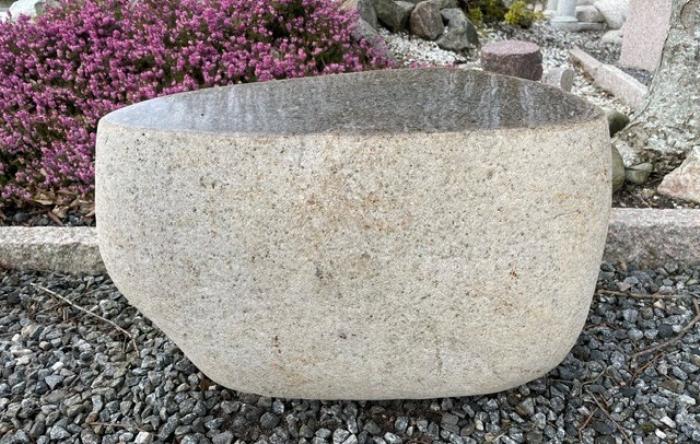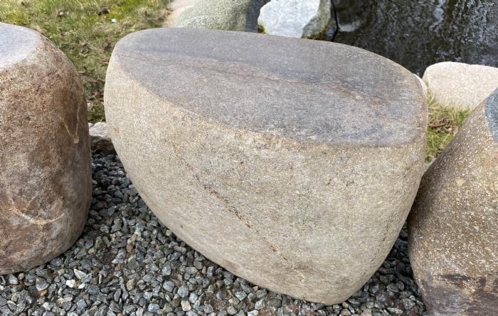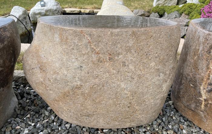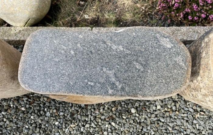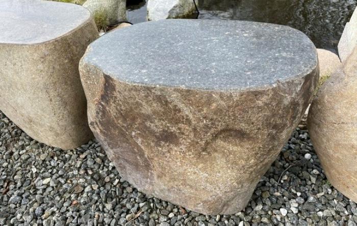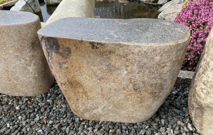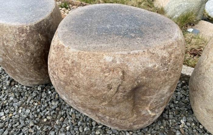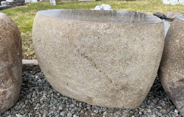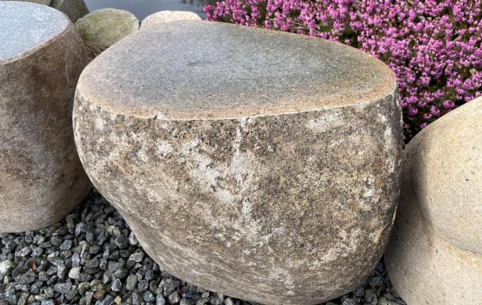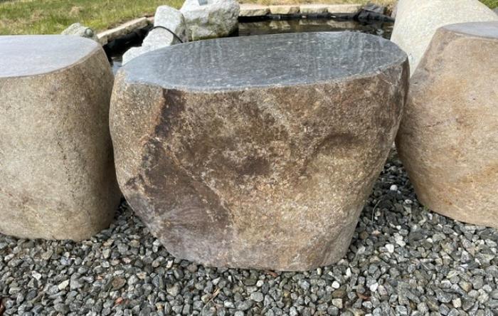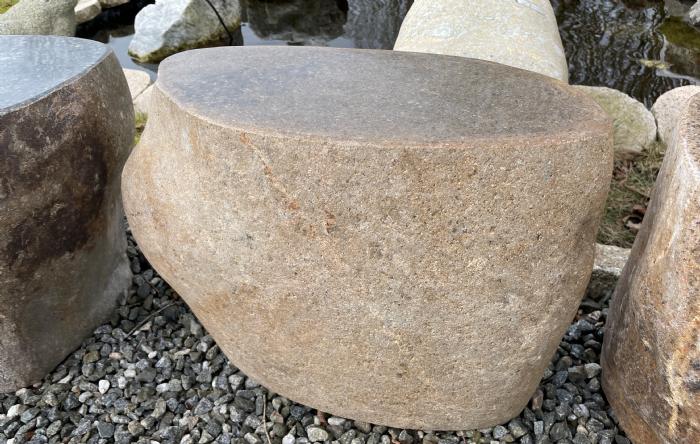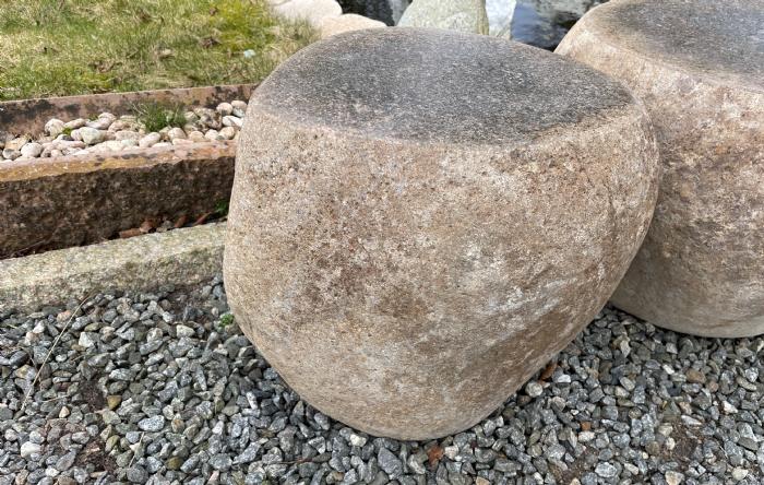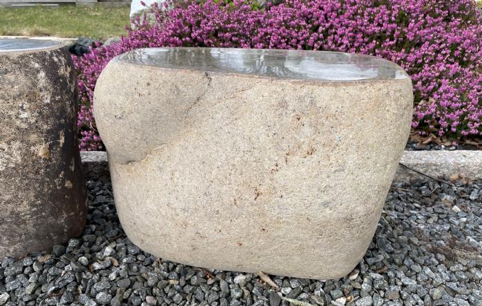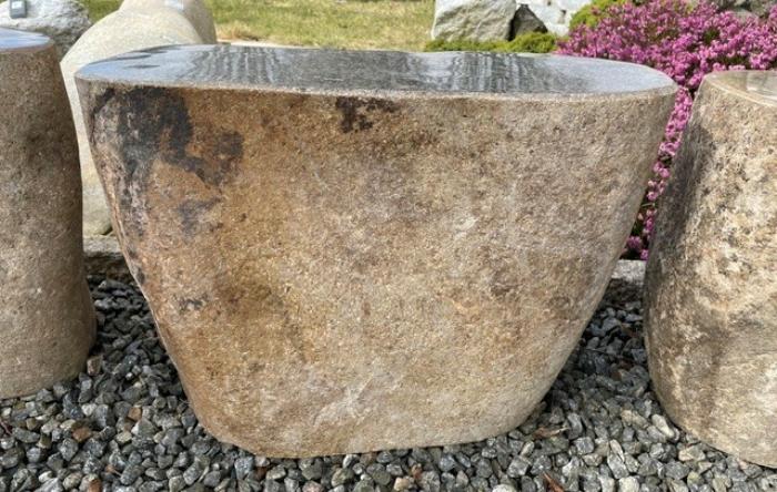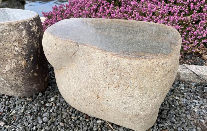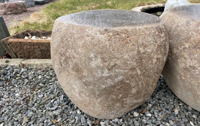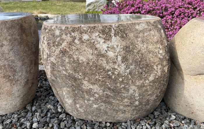 Markstenstaburetten har en meget rustik og naturlig overflade på siderne og en poleret top.