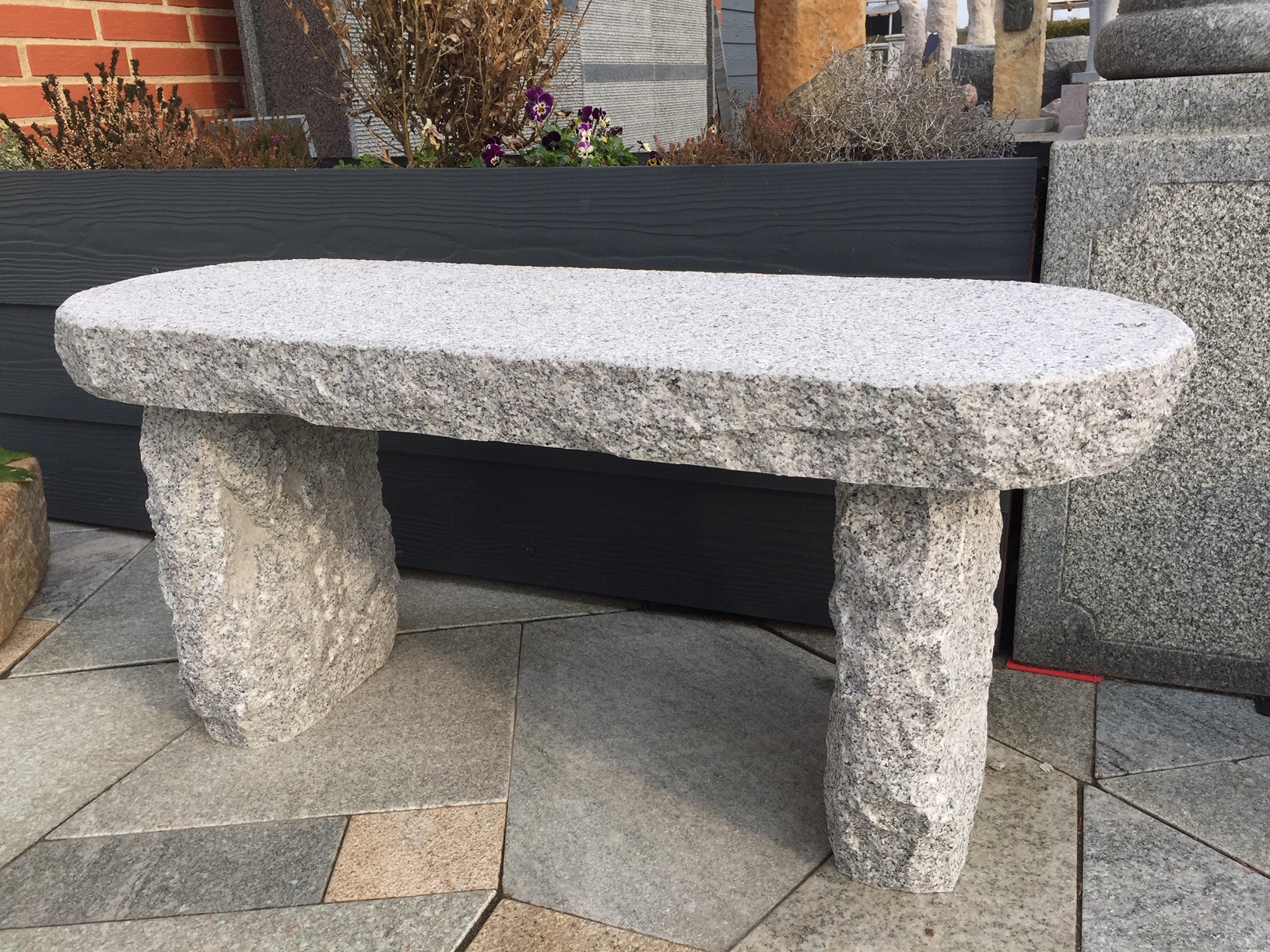 Rustik bænk lys grå granit