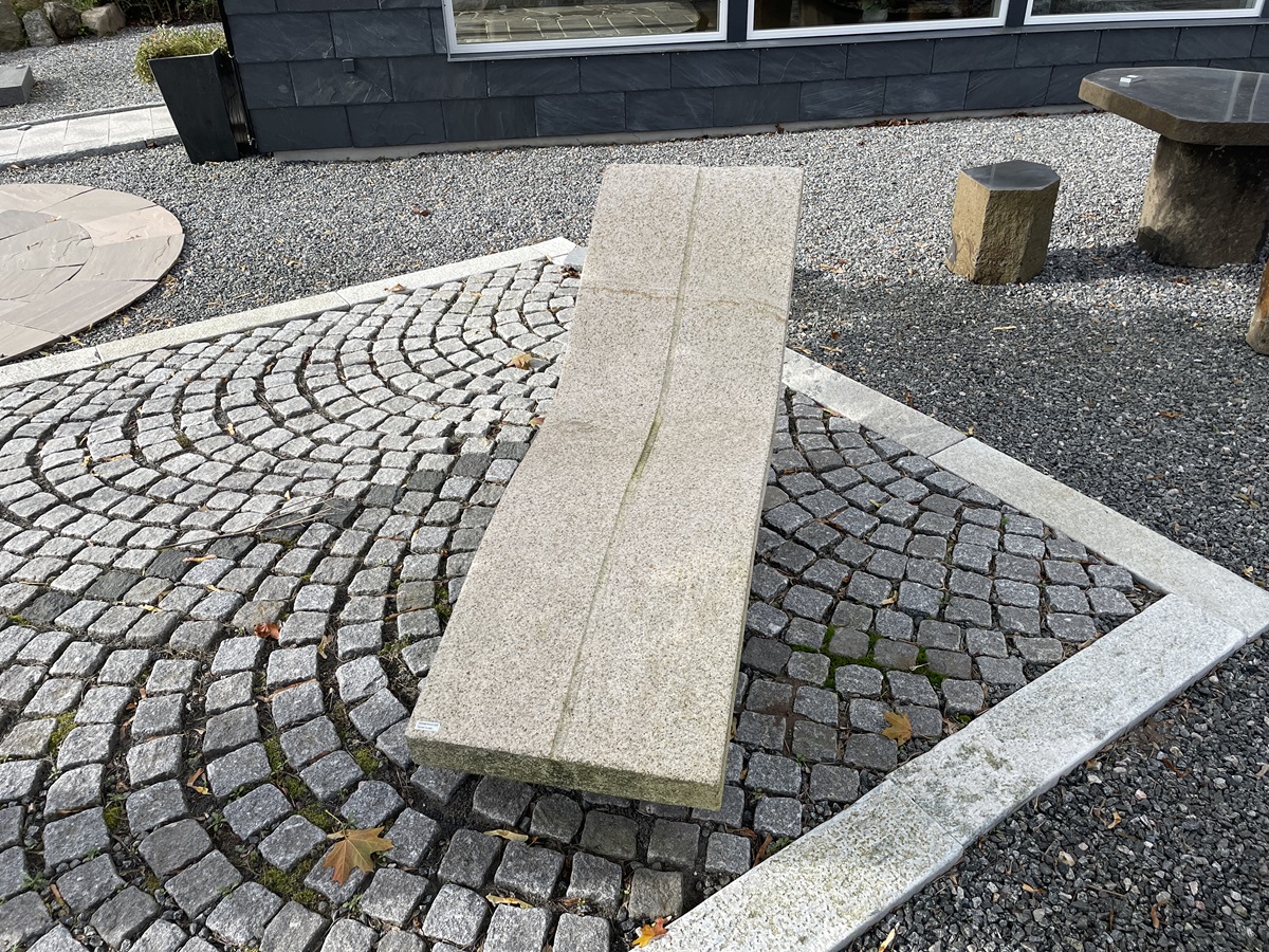 Solvognen er blødt udformet med en poleret top som frembringer granittens farve, og står i god kontrast til det resterende rå look. Med en god hynde eller et par puder, har du møblet til solskinsdagene i haven eller på terrassen.