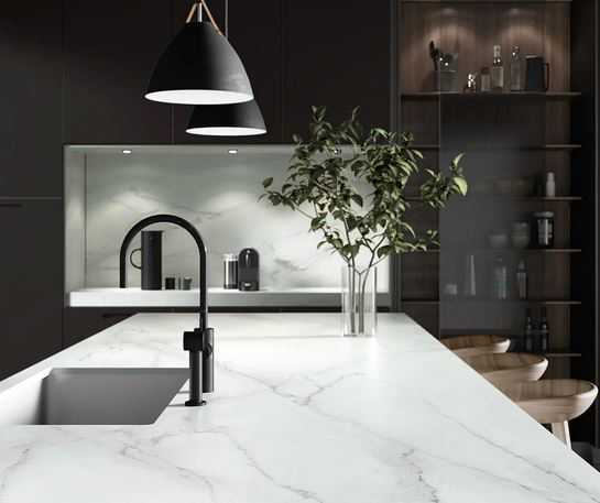Beklædningsplade i DEKTON - et keramisk materiale med rigtig hårdfør overflade. Den ultimative løsning til indendørs beklædning. Særdeles velegnet som beklædning til stort set alle formål. Lys marmorlignede farve med helt fine åretegninger og mat overflade.