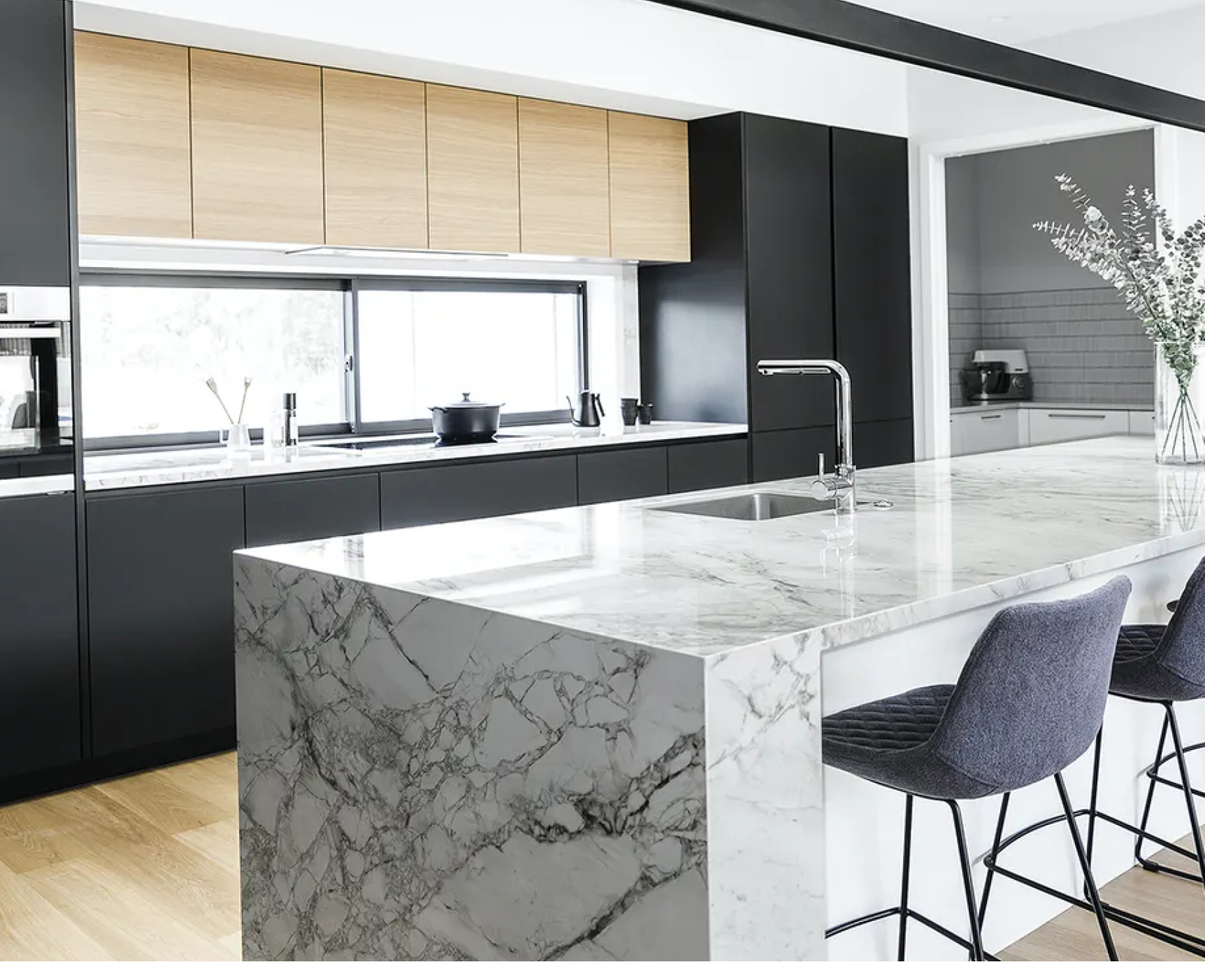 Dekton® Stonika Bergen er inspireret af Portobello-sten og har samme farve, struktur og dybde som naturstenen. Variationen i de grå årer og mønstre på den hvide baggrund giver designet liv og bevægelse.