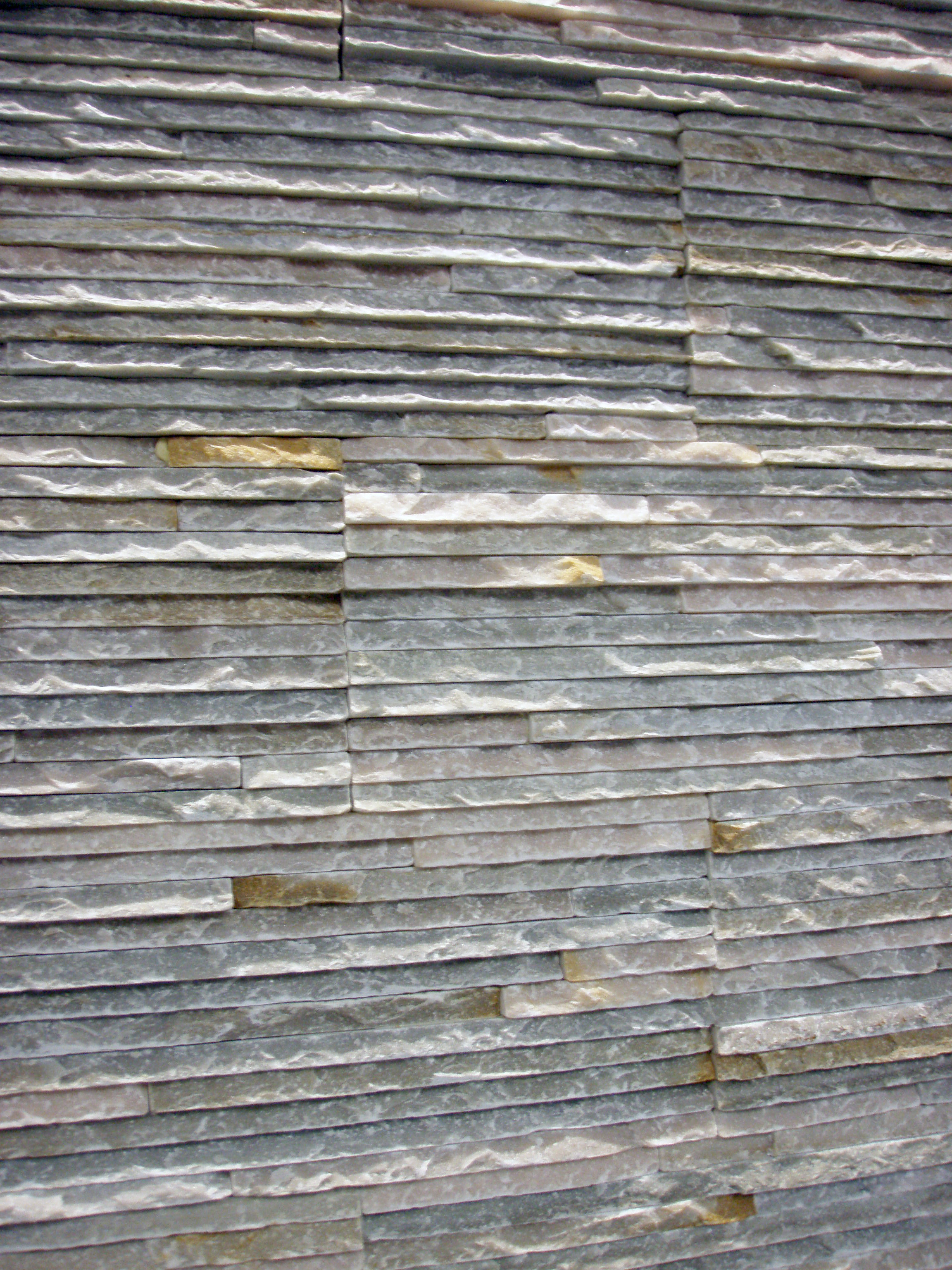 Denne lyse skifer er en enkel og rustik vægbeklædning. Skiferstrimlerne er limet sammen til paneler, der er nemme at håndtere samt at montere.