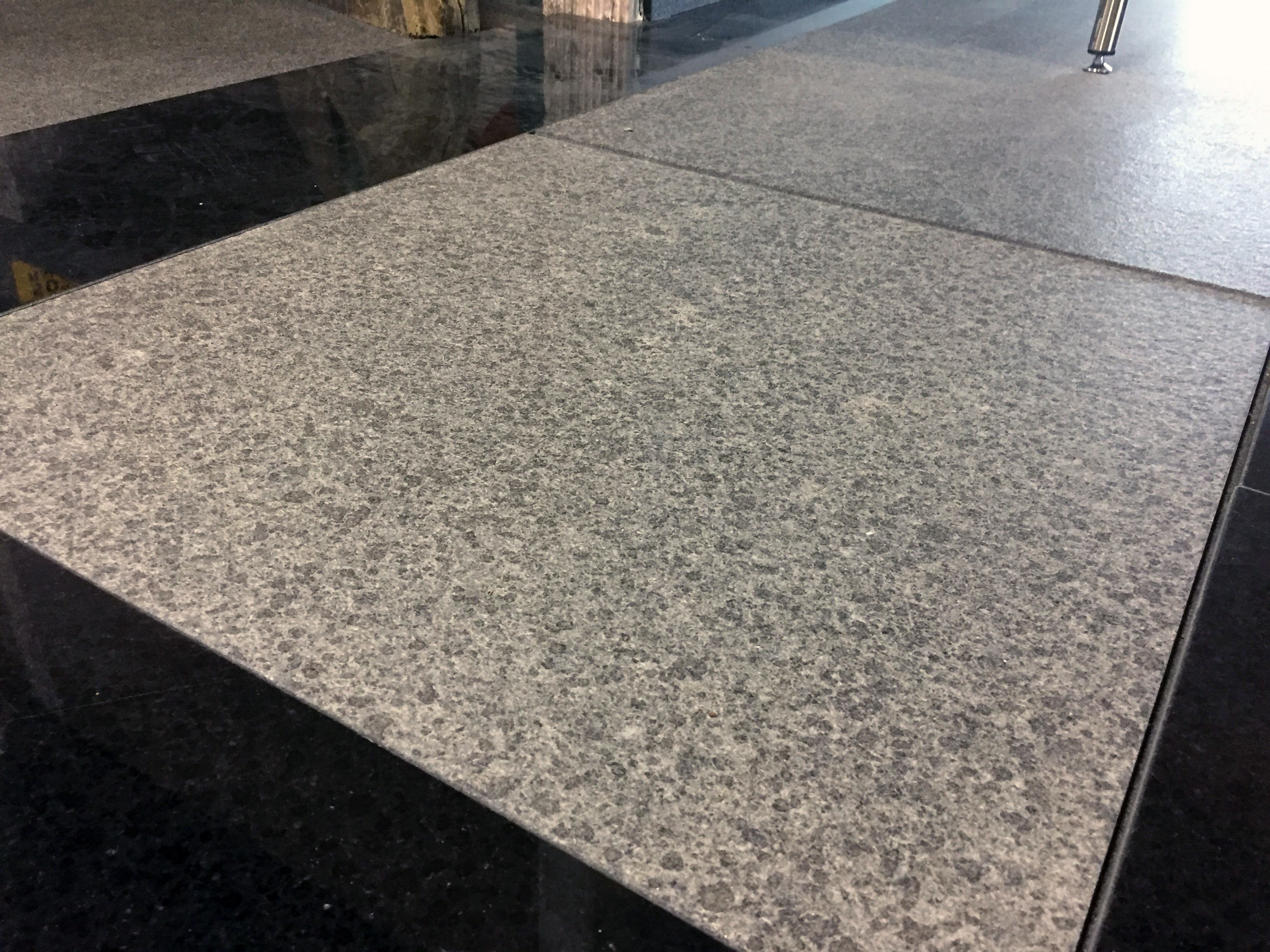 Monteres med almindelig fliseklæb og fugemasse. Afvask kun med vand eller AKEMI mild stensæbe. Basalt tåler ikke nogen form for syrebehandling.