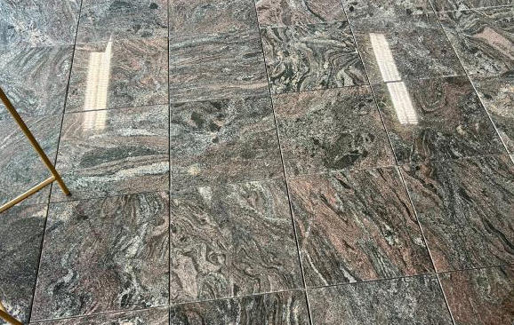 Indiske granitfliser Paradiso. Disse slidstærke fliser bringer et hvert rum til live med de flotte nuancer og levende åre - der er ikke to fliser, som er ens. Med farver fra lilla til rød, sort og grå får man ikke kun et gulv, der er nemt at vedligeholde, men også et imponerende farvespil. Fliserne er velegnede til køkken, bad eller entré. Til den daglige rengøring anbefales AKEMI Mild Stensæbe.