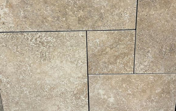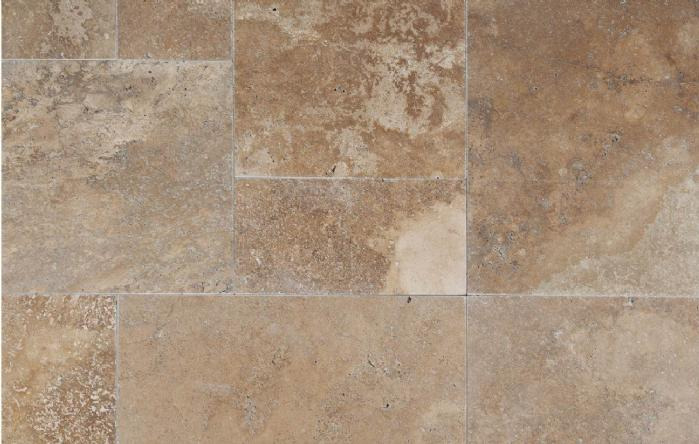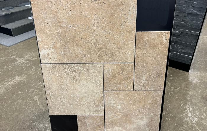 Travertin fliser mørk valnød med slebet overflade. De flotte farver giver et unikt farvespil, som gør stenen tidløs i alle hjem. Travertin er en kalksten og der må ikke anvendes syreholdige rengøringsmiddel til disse. Fliserne ligges i romersk mønster bestående af størrelserne: 20 x 20 / 20 x 40,6 / 40,6 x 40,6 / 40,6 x 61,0 cm.