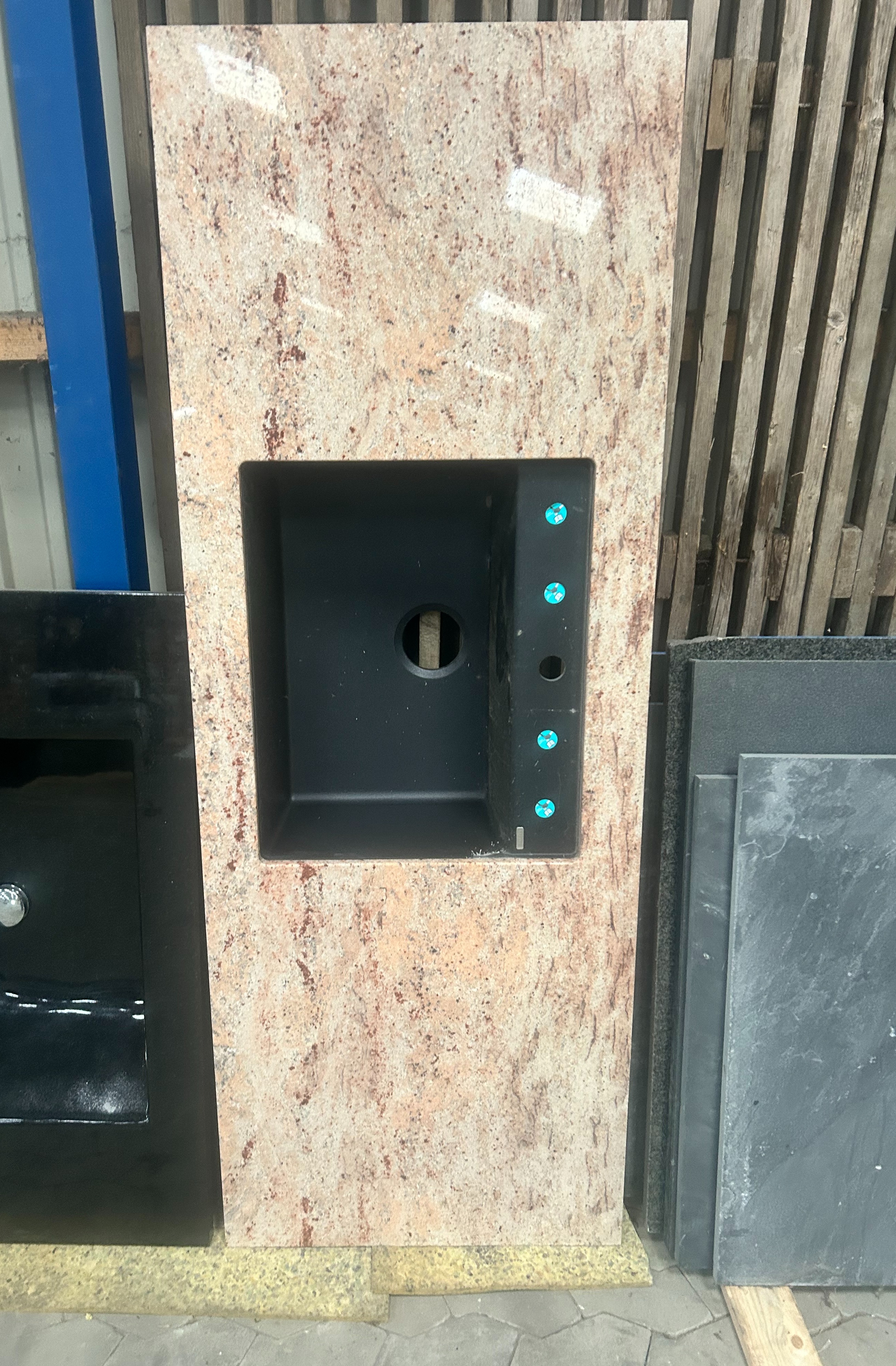 Bordplade m. sort silgranit vask lavet i Shiva Kashy granit med poleret overflade