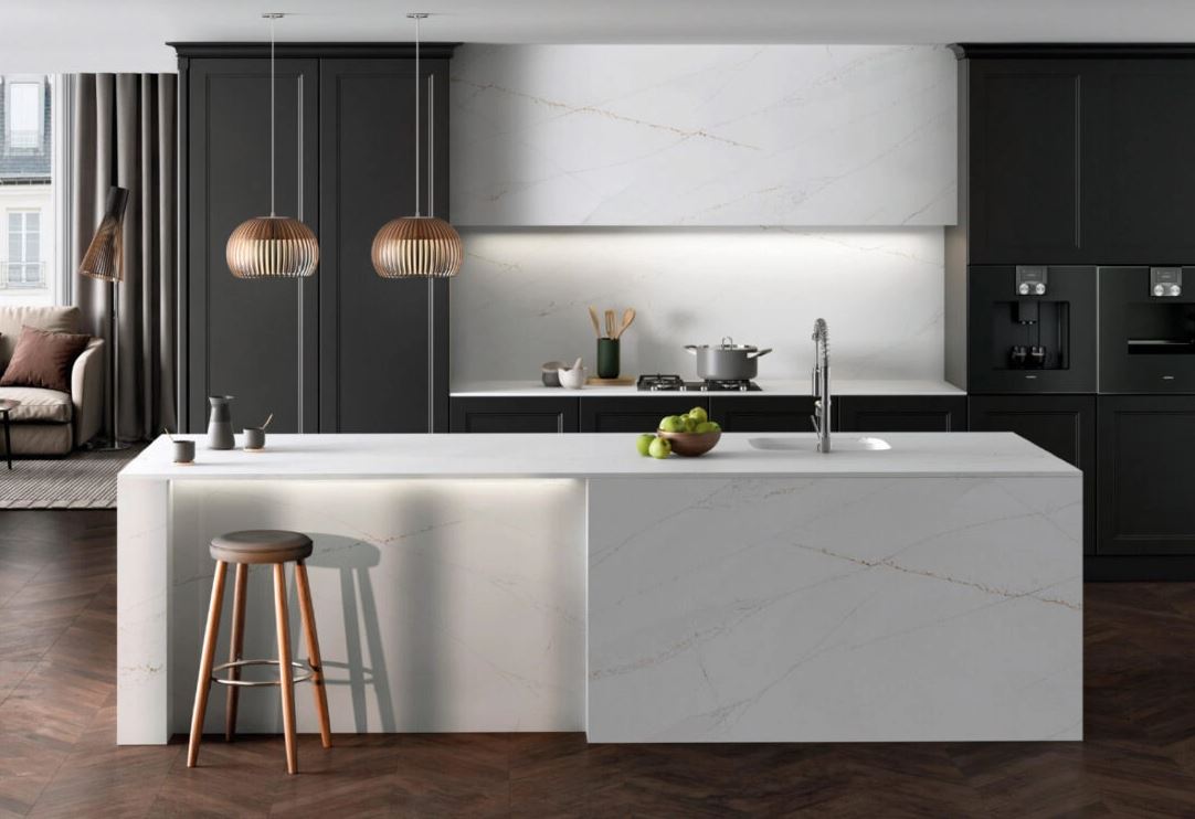 Lyst og elegant udtryk med poleret eller mat overflade. Denne Silestone farve ligner til forveksling hvid marmor med den genkendelige åretegninger. Super elegant i køkken eller på badeværelset eller andet til boligen:fliser, vaske, vindueskarme eller hylder